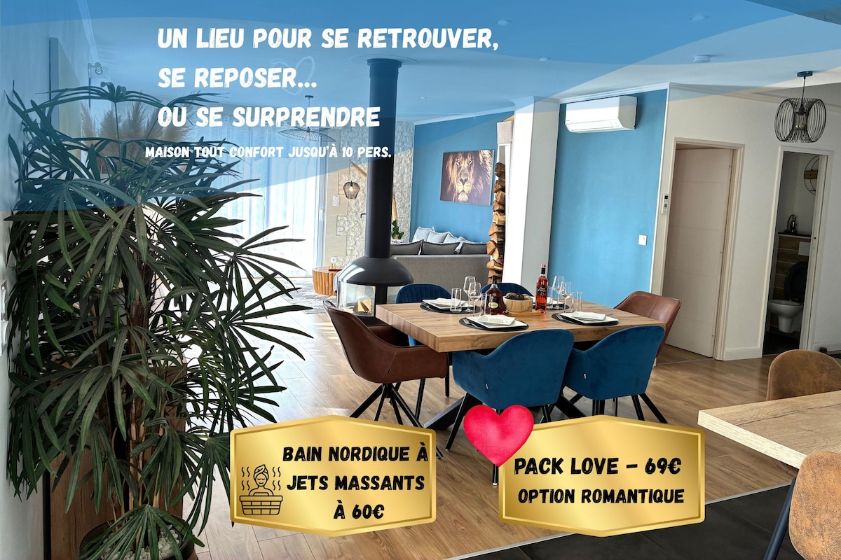 Bienvenue aux Coquelicots. La maison de plein pied sur un terrain clos est entourée de verdure avec une vue imprenable sur l'étang sans aucun vis à vis. Dotée de la fibre, elle est idéale pour les professionnels avec un parking privé permettant de stationner 3 voitures ou 1 grand fourgon, et un garage pour le matériel Vacanciers, sportifs, curistes, pêcheurs, cyclotouristes tout est réuni pour vous satisfaire Sans oublier les passionnés de TERRA AVENTURA avec de nombreux parcours aux alentours