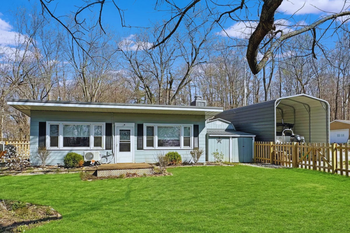 The Cozy Canary is the perfect getaway, located in Parke County “Covered Bridge Capital of the World”. Just a 3-min walk to Raccoon Lake. 1st floor features 1 bdrm, full bath, living rm, game area & outdoor deck. Lower-level features 1 bdrm w/full bath, kitchen, washer/dryer, add’l queen bed w/privacy curtain, screened in porch, outdoor fire pit. Nearby: Raccoon Lake State Park, Billie Creek Village, Turkey Run & Shades State Parks, 31 Covered Bridges, MainStreet Rockville