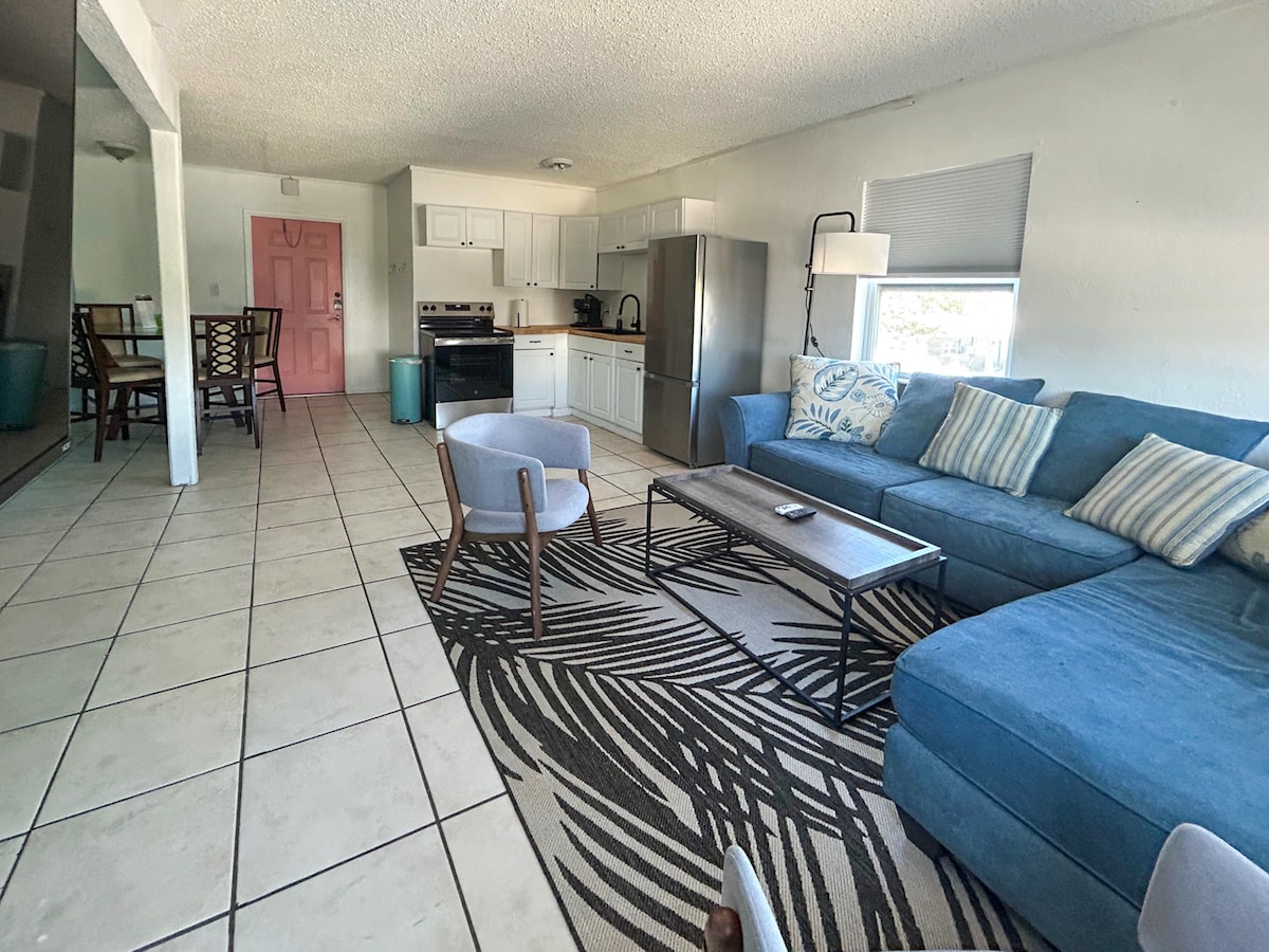 Πρόσφατα ανακαινισμένο παραθαλάσσιο σπίτι, φωτεινό και όμορφα εξοπλισμένο διαμέρισμα 2 υπνοδωματίων/2 μπάνιων στον δεύτερο όροφο με μπαλκόνι με θέα στον κόλπο Boca Ciega. Μοντέρνα διακόσμηση παραλίας. Λίγα μόνο βήματα από τη λευκή αμμώδη ΠΑΡΑΛΊΑ του Treasure Island. Απίστευτη θέα στο νερό από κάθε παράθυρο. 3 διαθέσιμα ΚΑΓΙΑΚ (πρέπει να υπογράψετε παραίτηση). Διασκεδαστικές δραστηριότητες, όπως πινγκ πονγκ, καλαμποκότρυπα κ.λπ., σε κοινόχρηστο χώρο. Μόνο 6 μονάδες στην ιδιοκτησία. Προβλήθηκε στο HGTV Beachfront Bargain Hunt (Σεζόν 27 Επεισόδιο 10).