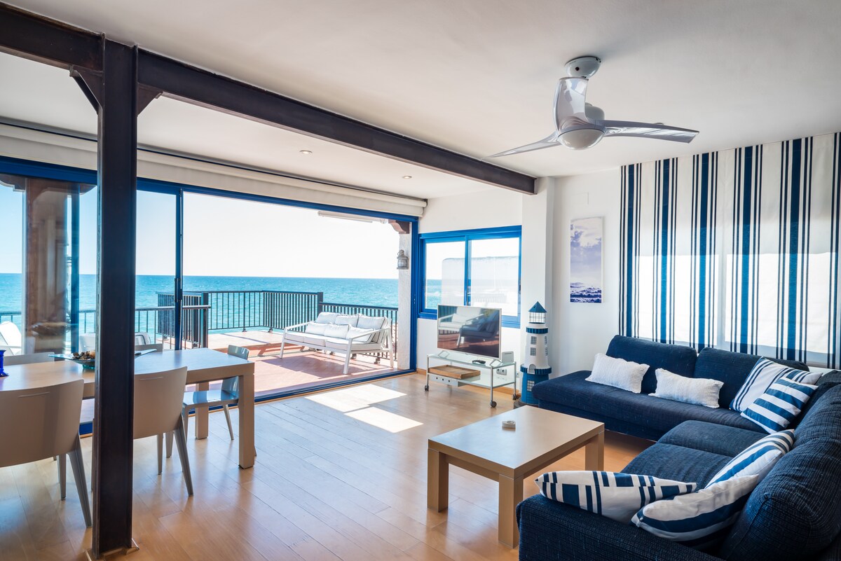 Recently renovated beachfront apartment with new bathrooms and kitchen, private parking, large terrace with stunning sea views, capacity for 6 people, and private beach umbrella (number 30). We adapt to your check-in schedule. Check-in hours from 10am to 1pm, and holidays from 11:30am to 2pm and from 4pm to 8pm. Enjoy a family vacation and a pleasant experience in our beach apartment. We look forward to seeing you soon!