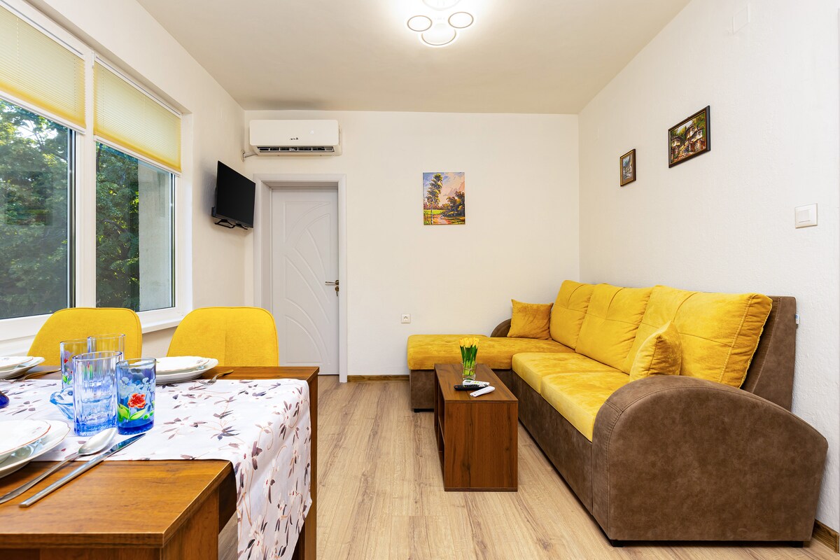Διαμέρισμα ενός υπνοδωματίου σε κεντρική τοποθεσία. 10 λεπτά περπάτημα μέχρι: • Κεντρικός σταθμός λεωφορείων και τρένων • Όλοι οι σημαντικοί τουριστικοί χώροι • Markovo Tepe Mall • Sila Sport Complex • Γυμναστήρια και παντοπωλεία Πρόωρη άφιξη στις 10:00 π.μ. Αναχώρηση αργά, στις 13:00 Πλήρως εξοπλισμένη κουζίνα για μεγαλύτερες διαμονές. Για έως 3 άτομα • Υπνοδωμάτιο - 1 υπέρδιπλο κρεβάτι (180/200 εκ.) • Σαλόνι - 1 καναπές (190/90) • Πλήρως εξοπλισμένη κουζίνα • Μπάνιο • Πλυντήριο και αποθήκη Διατίθεται χώρος στάθμευσης επί πληρωμή στον χώρο του καταλύματος.