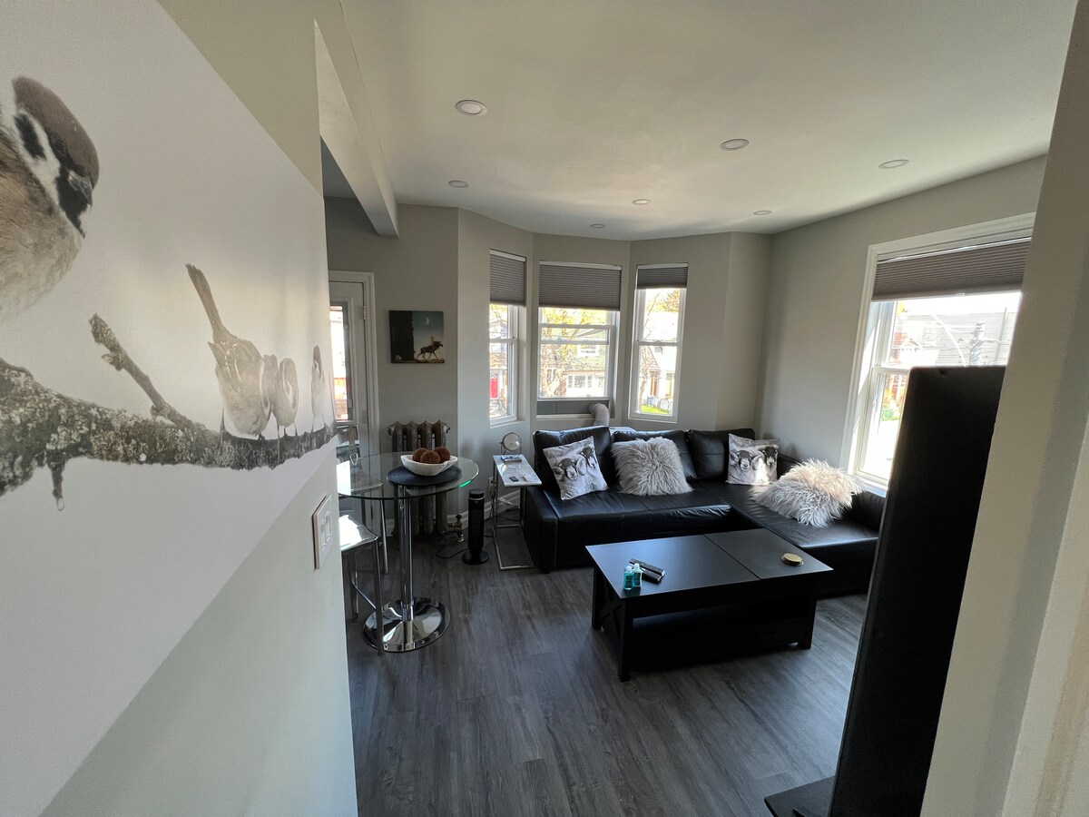 On 3rd floor, This is Bright, Modern, Private 1-1 Suite in Leslieville/ Upper Beaches. Beautiful high end finishes, saturated with natural light, skylights fully equipped with everything you may need. The sitting-room has big oversize sofa, a large 85"LED smart TV with all the channels, own entrance, Queen bed with tv, Close distance to everything: The Beaches, Little India, The Danforth, Michael Garron Hospital. Walking Distance to History Drake's Event Venue NO SMOKING / NO PETS / NO PARTIES