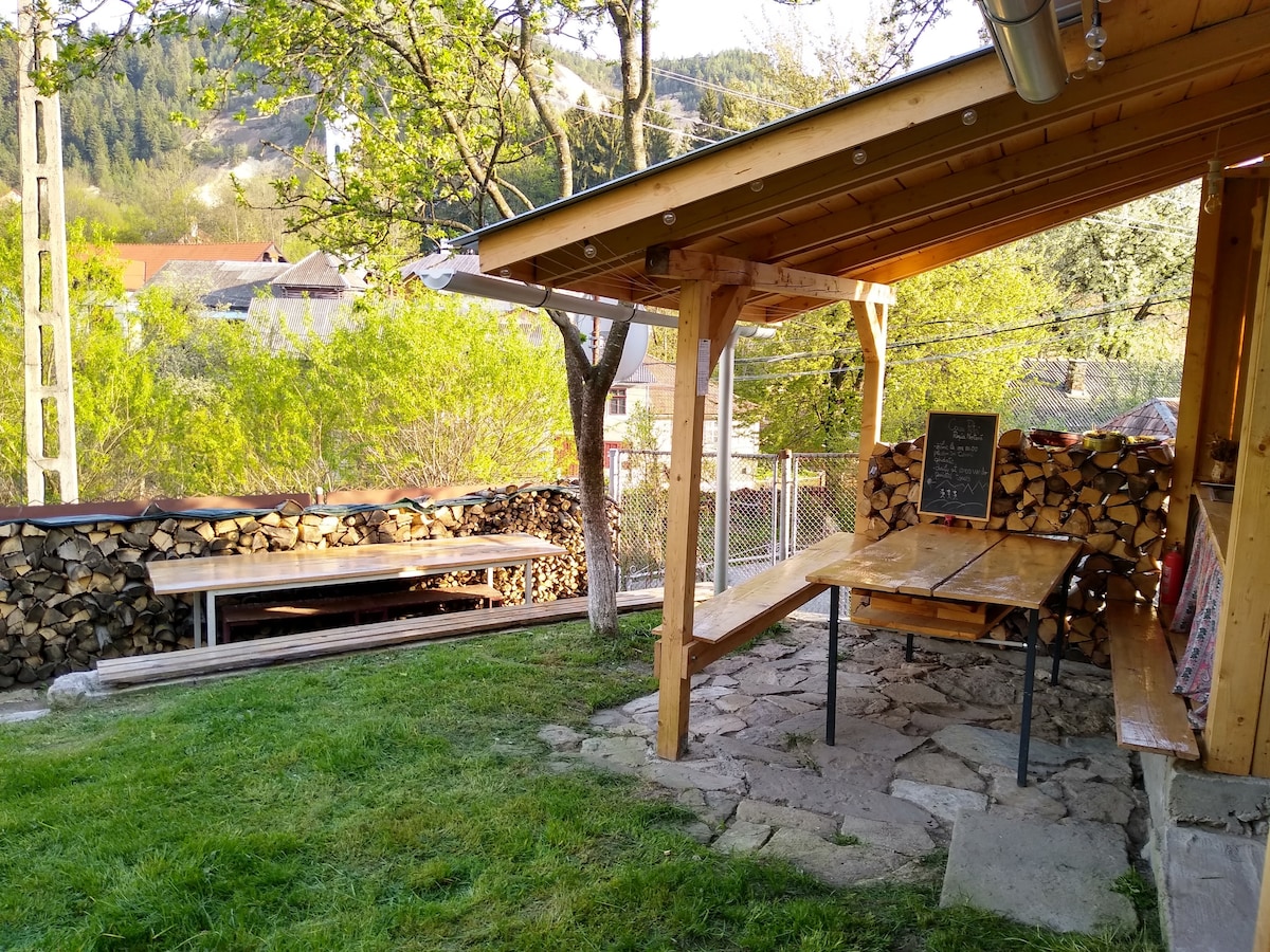 Ο ξενώνας μας είναι ένας παλιός ξύλινος αχυρώνας που έχει μετατραπεί σε έναν άνετο ξενώνα. Βρίσκεται σε ένα σιωπηλό χωριό της Τρανσιλβανίας ανάμεσα σε ατελείωτα βουνά και δάση. Το κτίριο περιλαμβάνει τρία υπνοδωμάτια με ξεχωριστό μπάνιο και έναν μεγάλο κοινόχρηστο χώρο. Έχουμε έναν τεράστιο κήπο για να χαλαρώσετε, να αθληθείτε, να περπατήσετε. Έχετε τη δυνατότητα να χρησιμοποιήσετε το τζακούζι με θαλασσινό νερό.