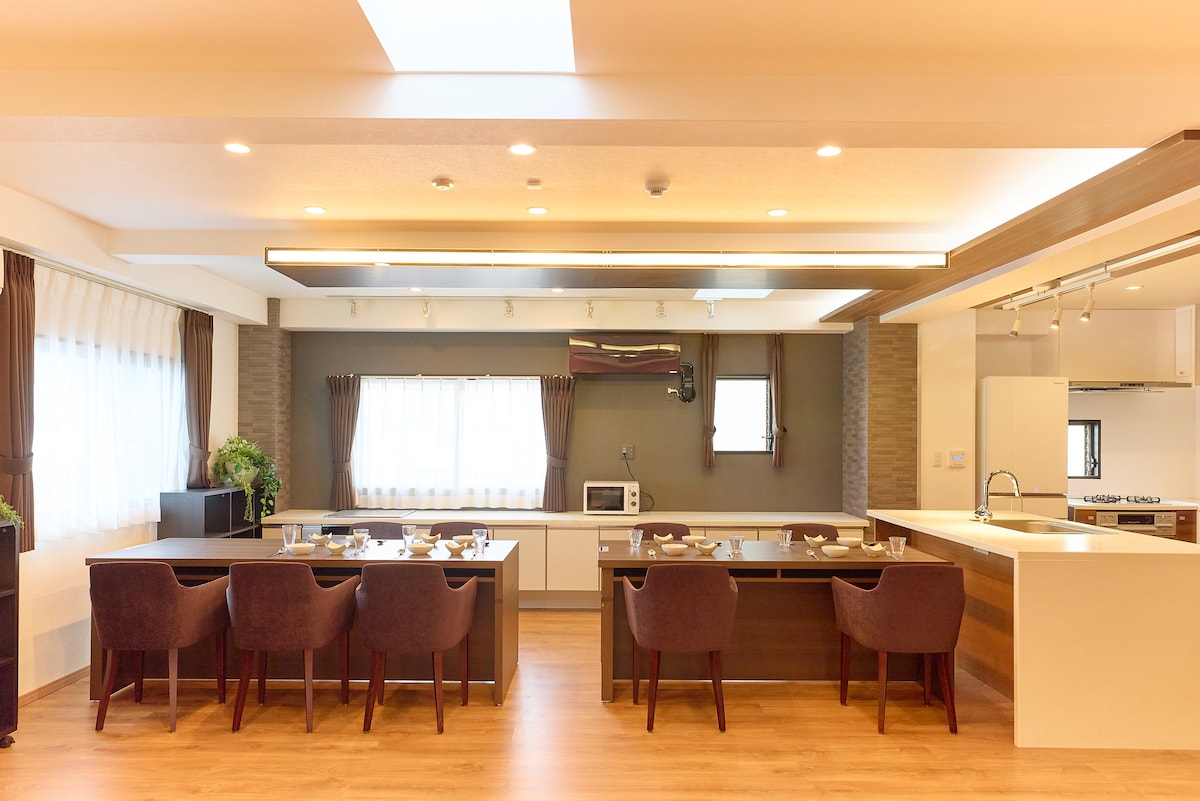 Αυτό είναι ένα δωμάτιο που μπορεί να νοικιαστεί εξ ολοκλήρου στον τελευταίο όροφο, τον 4ο όροφο. Διαθέτει διάταξη 3 υπνοδωματίων + σαλονιού που μπορεί να φιλοξενήσει έως και 12 άτομα και συνιστάται για οικογένειες και γκρουπ που εκτιμούν την ιδιωτικότητα. Εξοπλισμένο με τηλεόραση 4K 55 ιντσών, WiFi και πλυντήριο-στεγνωτήριο, είναι επίσης κατάλληλο για μακροχρόνιες διαμονές και τηλεργασία. Η πλήρης κουζίνα με εστία 3 εστιών και αυτόματο πλυντήριο πιάτων είναι πλήρως εξοπλισμένη με μαγειρικά σκεύη και πιάτα και μπορείτε να αγοράσετε υλικά στο κοντινό σούπερ μάρκετ και να κάνετε ένα πάρτι στο σπίτι. Κάθε υπνοδωμάτιο διαθέτει ημιδιπλό κρεβάτι, κρεμάστρα και πρίζα, ενώ ένα δωμάτιο διαθέτει γραφείο και σιδερώστρα, ώστε να μπορείτε να απολαύσετε μια άνετη διαμονή στην πόλη.