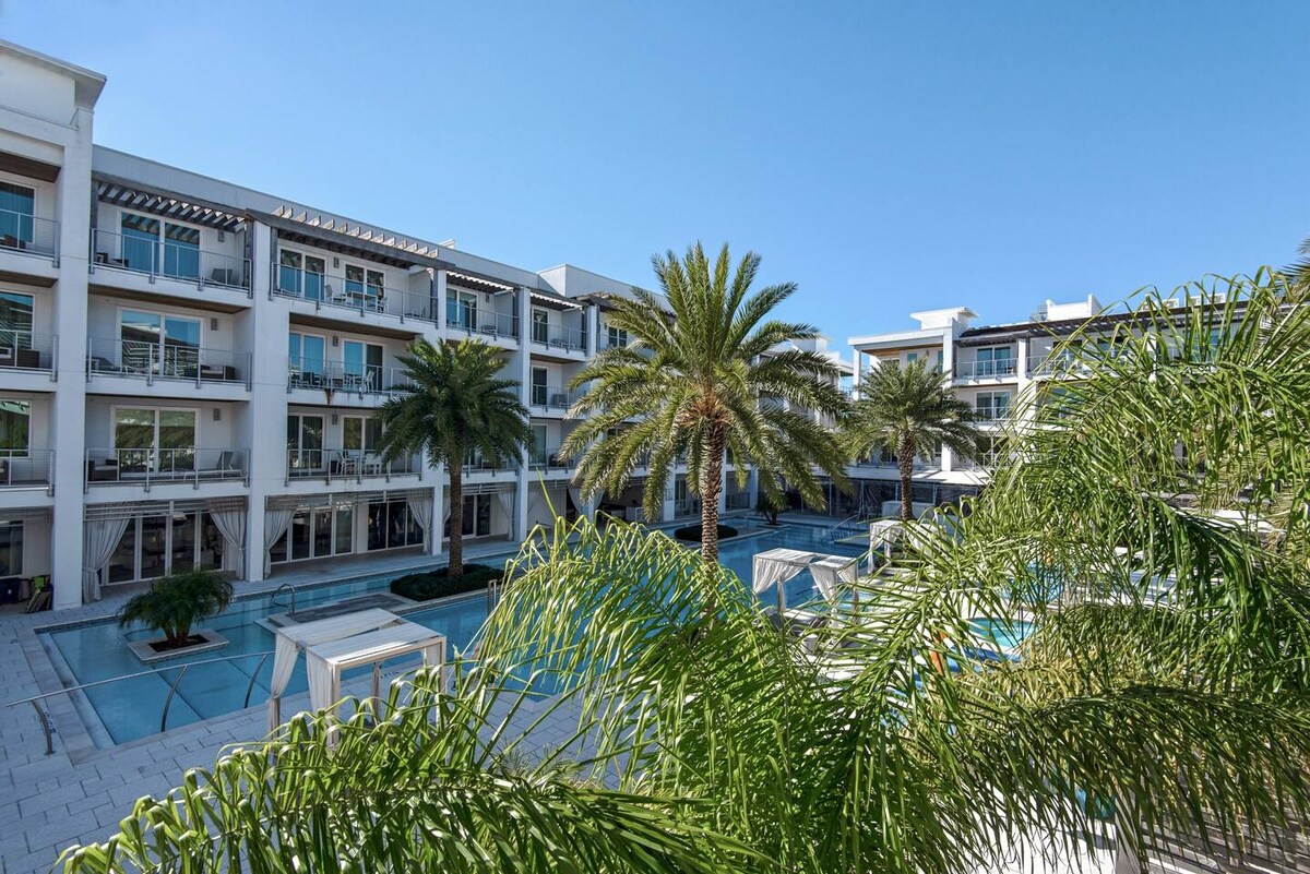 Σημείωση: Το μπαλκόνι πρόσθεσε πρόσφατα επιπλέον ξύλινα δοκάρια στήριξης, τα οποία μπορεί να εμποδίσουν ελαφρώς τη θέα στην πισίνα και την αυλή. Ενδέχεται να υπάρχει θόρυβος από οικοδομικές εργασίες κατά τη διάρκεια του Ιουνίου-Αυγούστου, καθώς αντικαθίστανται οι ανελκυστήρες σε ένα κοντινό κτίριο. 5 λεπτά με τα πόδια από τη δημόσια παραλία στη λωρίδα Winston ~ 5 λεπτά με τα πόδια από το Rosemary Circle ~ Μεγάλο κακό πρωινό εστιατόριο στον χώρο ~ Απόσταση με τα πόδια από εστιατόρια και καταστήματα ~ 4 καρέκλες παραλίας ~ 4 πετσέτες παραλίας ~ 2 δωρεάν ποδήλατα Απολαύστε όλες τις πολυτέλειες ενός θέρετρου