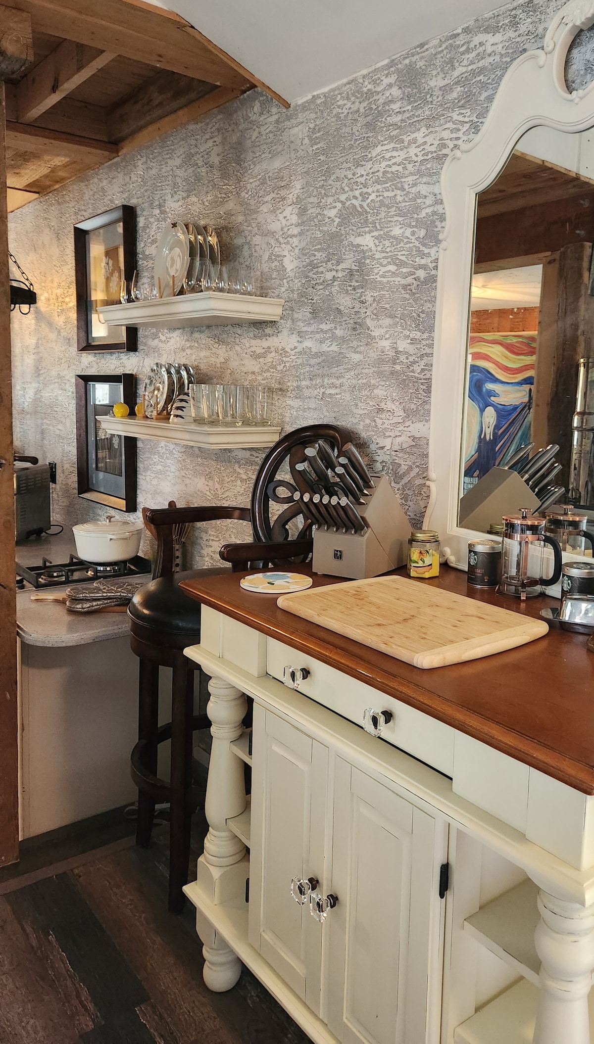 This unique, centrally located 500 sq ft ground-floor, 1.5 story apartment is in an ideal location to explore Rosendale and the surrounding areas. Located in a 1890s Brownstone, the Shack is a comfortable refurbished studio with hand hewn beams, brick walls and a wood burning stove. Sleep in a queen Murphy bed (pulls down) and prepare food in the kitchenette. Keep in mind nobody above you and the town shuts down at 10 PM so you have a decent amount of peace and quiet.