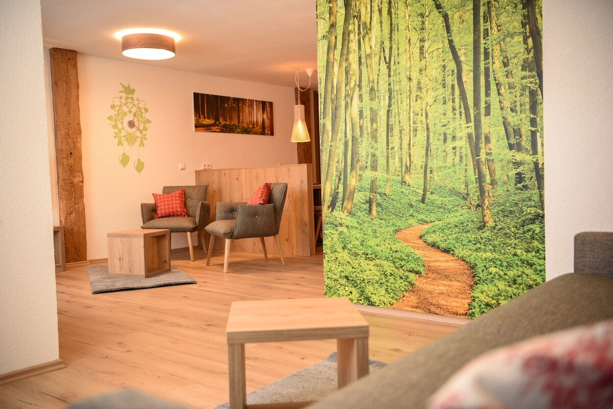Κομψό διαμέρισμα στον Μέλανα Δρυμό – Σύγχρονη ζωή στην καρδιά της φύσης Καλώς ήρθατε στο γοητευτικό, ισόγειο νέο διαμέρισμά μας (35 τ.μ.) που είναι διαθέσιμο για τους επισκέπτες από το 2024! Το μοντέρνο και κομψά επιπλωμένο κατάλυμα διαθέτει όλα όσα χρειάζεστε για μια χαλαρωτική διαμονή. ΤΟΠΟΘΕΣΙΑ: Το διαμέρισμά μας βρίσκεται ακριβώς στο κέντρο του χωριού, μόλις λίγα βήματα από το πάρκο με τις ιαματικές πηγές. Ένα παντοπωλείο καθώς και ο σιδηροδρομικός σταθμός βρίσκονται επίσης σε κοντινή απόσταση με τα πόδια.