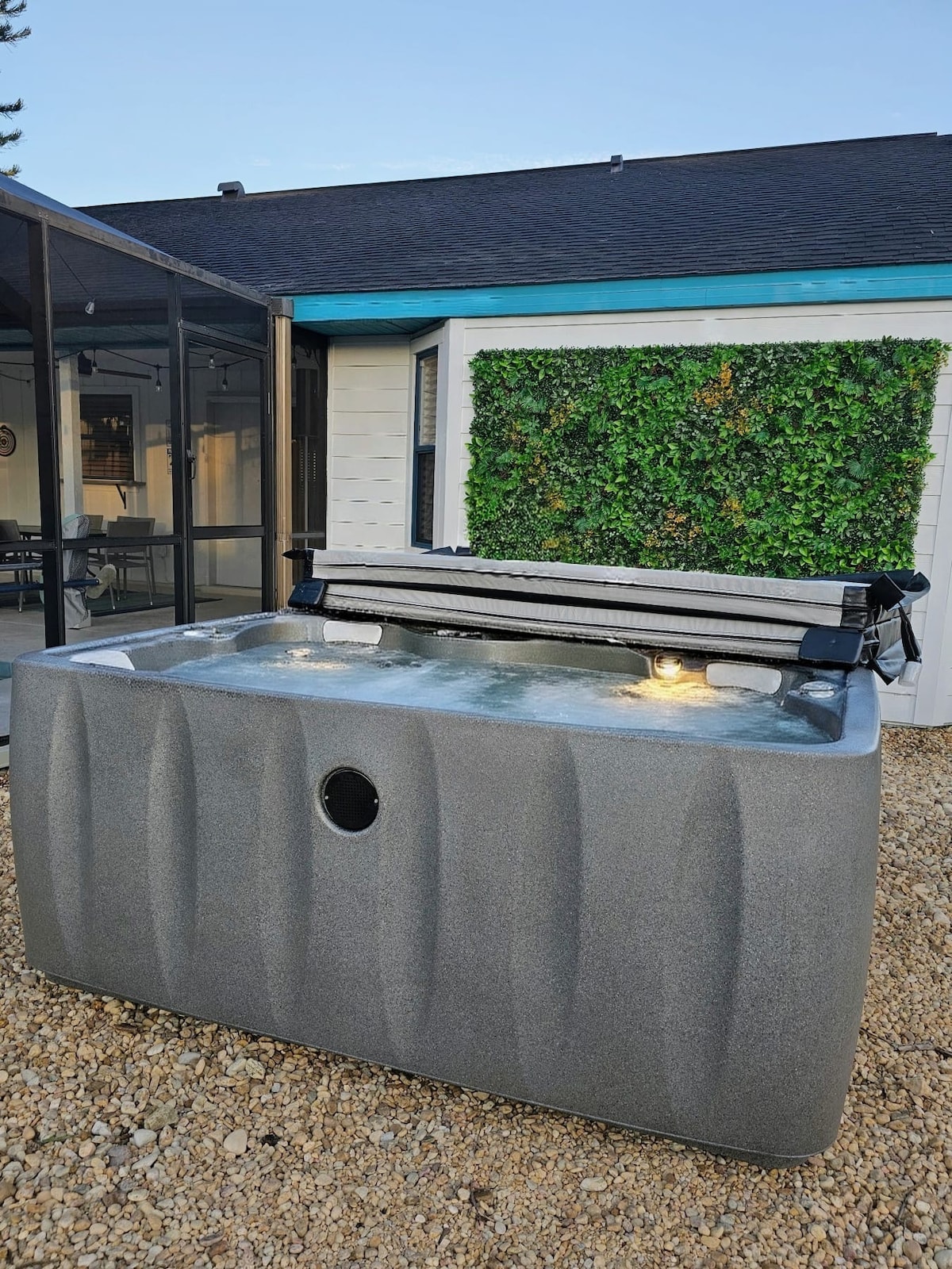 Take it easy at this unique and tranquil getaway. Nestled alongside a serene canal, our home is a sanctuary of tranquility and natural beauty. From the moment you step onto the property, you are met with charm and allure that only canal front residence can offer. For those who enjoy outdoor activities, the canal provides a perfect venue for kayaking, fishing and lounging in our cocktail pool and hot tub. Surrounding sliding glass doors opens up to 3 separate patios.