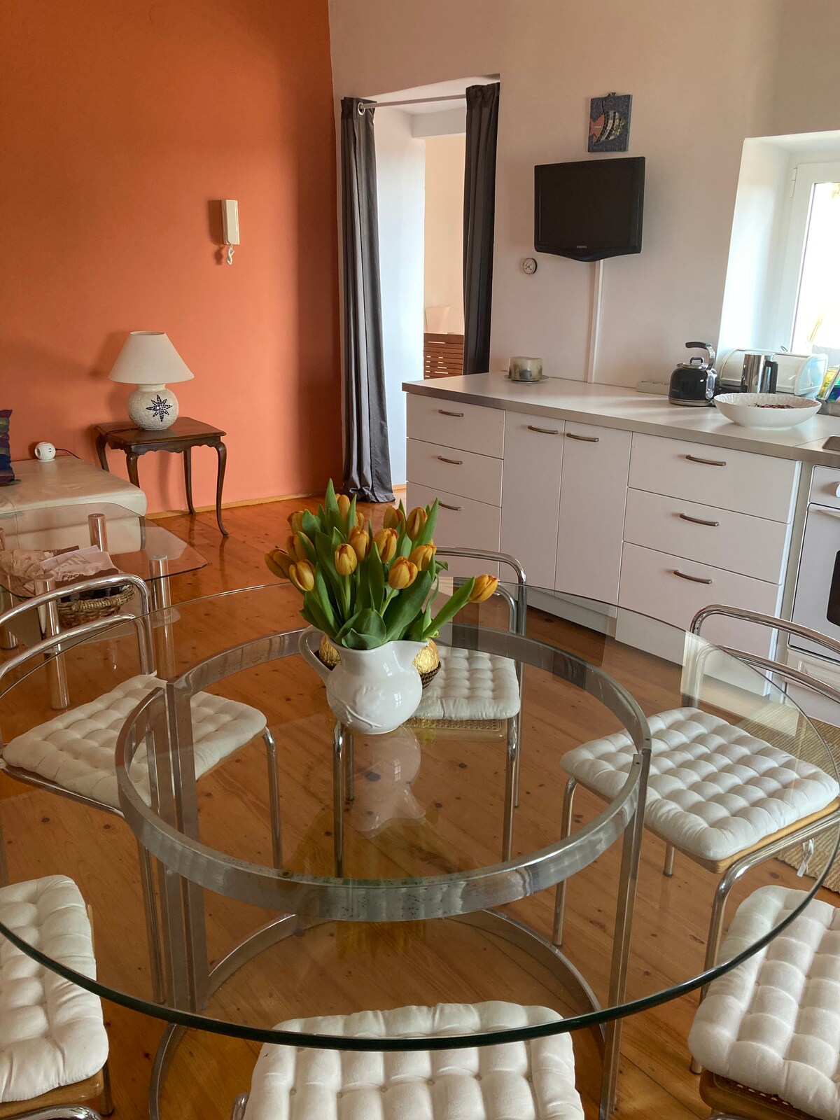 Ερωτευτήκαμε το Ροβίνι και αποφασίσαμε να αγοράσουμε ένα διαμέρισμα εδώ στην παλιά πόλη. Μόλις ολοκληρώσαμε την ανακαίνισή του και είμαστε ενθουσιασμένοι με το αποτέλεσμα. Είμαστε σίγουροι ότι θα λατρέψετε τη διαμονή σας στο ευρύχωρο διαμέρισμά μας στην παλιά πόλη που βρίσκεται ακριβώς στην παλιά πόλη κοντά σε όλα. Θα χαρείτε να μάθετε ότι ο κύριος χώρος στάθμευσης απέχει μόλις 5 λεπτά με τα πόδια από το διαμέρισμα. Η ψαραγορά και η λαϊκή αγορά είναι ακριβώς μπροστά, ενώ η κεντρική πλατεία απέχει μόλις 100 μέτρα. Η τοποθεσία είναι απλά τέλεια.
