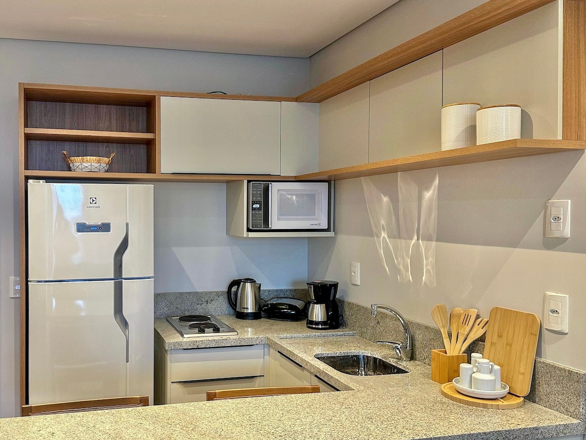 Flat localizado dentro do Hotel Sky Borges, contando com toda a infraestrutura: estacionamento gratuito, piscina aquecida, sauna, jacuzzi, espaço kids, sala de musculação, sv. de camareira c/troca de roupas de cama, de banho e limpeza do quarto (AS CAMAREIRAS NÃO LAVAM A LOUÇA). Ar, smart TV 42", TV a cabo, wi-fi e uma minicozinha c/frigobar, forno elétrico, cooktop elétrico, air fryer e microondas. O café da manhã não está incluído mas pode ser consumido e pago diretamente no check out.