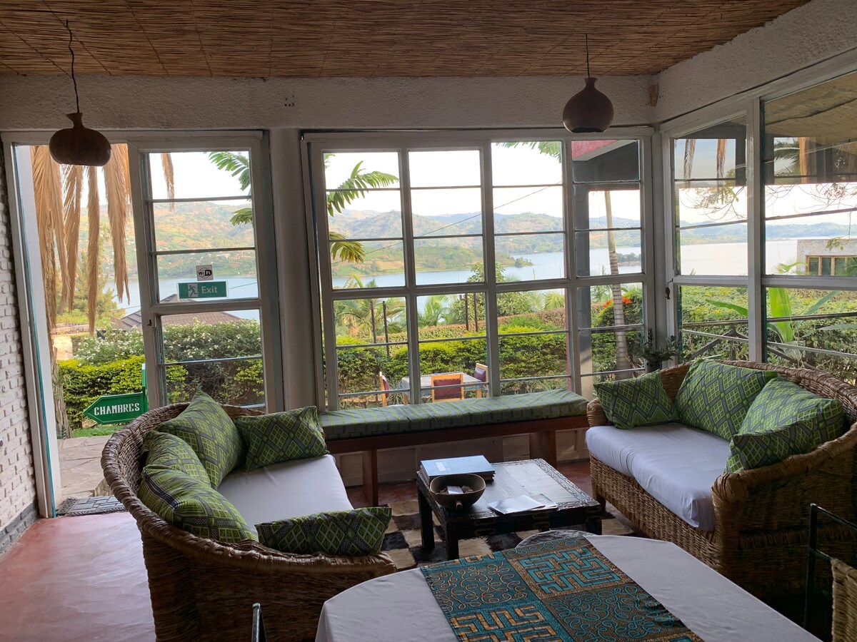 Beautiful, serene place on the water at lake Kivu. Beautiful gardens and superb views of lake, volcanoes and mountain. This Luxury Resort is located in untouched Nature.