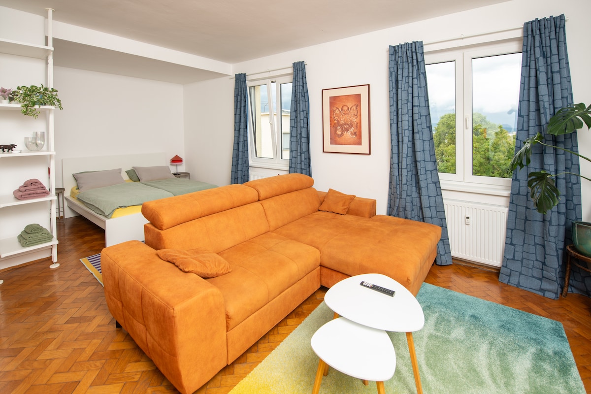 Πρόσφατα ανακαινισμένο το 2025. Ενδοδαπέδια θέρμανση. Ιδανικό για 4, άνετο για 6. Πρόκειται για ισόγειο διαμέρισμα (55 τ.μ.) με δική του είσοδο. Διαθέτει δωρεάν ιδιωτικό πάρκινγκ, WIFI υψηλής ταχύτητας και τηλεόραση, πλυντήριο/στεγνωτήριο, πλήρως εξοπλισμένη κουζίνα, δύο υπνοδωμάτια με κρεβάτια king size (180x200), σαλόνι με καναπέ/διπλό κρεβάτι, μπάνιο με ντους και βεράντα με τραπέζι και καρέκλες. Βρίσκεται σε μια ήσυχη γειτονιά - το Hofer/Aldi απέχει 600 μέτρα, το λεωφορείο συνδέεται απευθείας με το κέντρο της πόλης 300 μ. 5 λεπτά ή 3 χιλιόμετρα από το κέντρο της πόλης με το αυτοκίνητο.
