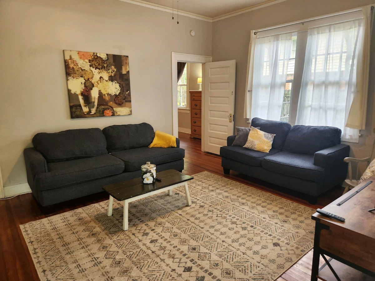Χαλαρώστε σε αυτήν τη μοναδική και ήσυχη απόδραση. Όμορφα σχεδιασμένο εξοχικό σπίτι λίγα τετράγωνα από εστιατόρια, μπαρ και καταστήματα στο κέντρο του Κολόμπους και σε κοντινή απόσταση (10 λεπτά με τα πόδια) από το πάρκο Synovus, αλλά αρκετά μακριά για ένα γαλήνιο και ήσυχο καταφύγιο. Το κατάλυμα προσφέρει όλα όσα χρειάζεστε για μια απόδραση το Σαββατοκύριακο ή για πολύμηνη ανάπτυξη. Το Chattahoochee Riverwalk και το Civic Center απέχουν μόλις δύο τετράγωνα. Λίγα λεπτά με το αυτοκίνητο από το Φορτ Μπένινγκ. Όλα τα έργα τέχνης είναι από ντόπιους καλλιτέχνες.