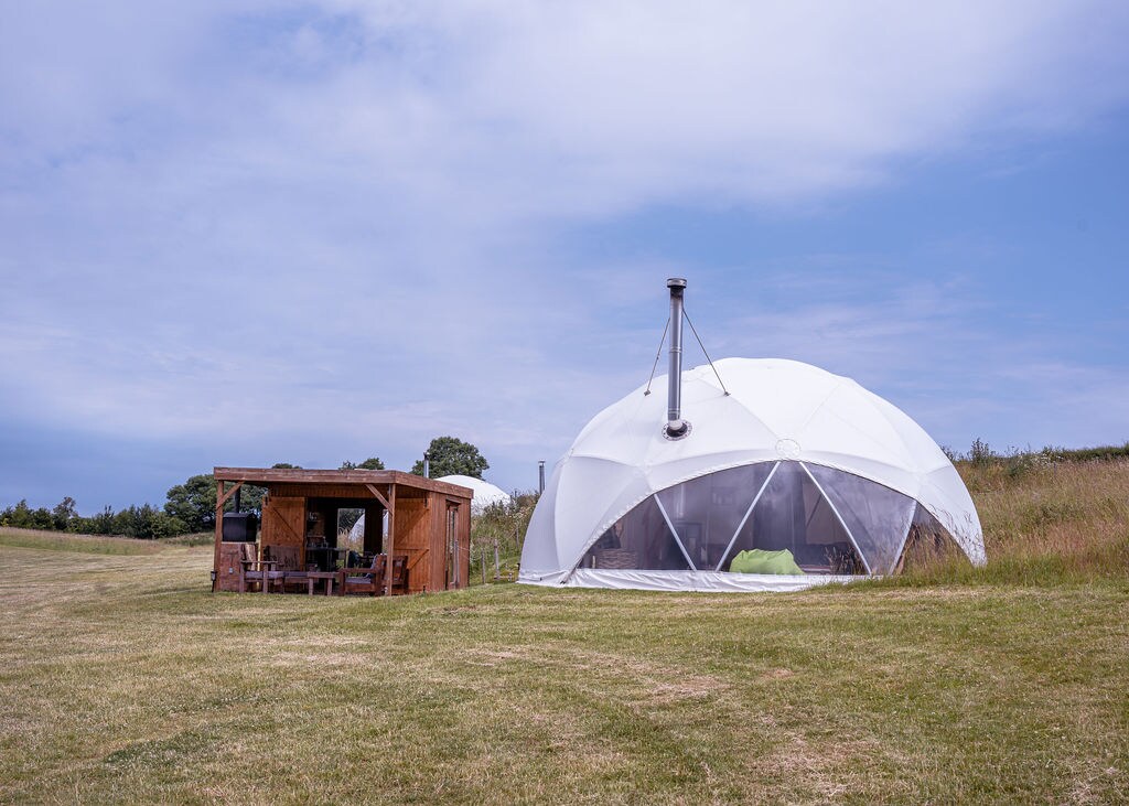 We’re a Wanderlust camping club site (1 person/unit must be a member and by booking you agree to this membership) please ask for more info! Reconnect with nature at this unforgettable escape, set in a working vineyard & cider orchard on the edge of a nature reserve. Beautiful views & peace and quiet. Minutes away from Rutland water south shore. With many activities close by. We have 5 stargazer Lotus Belle tents with decks and private outdoor bathrooms & cooking areas.