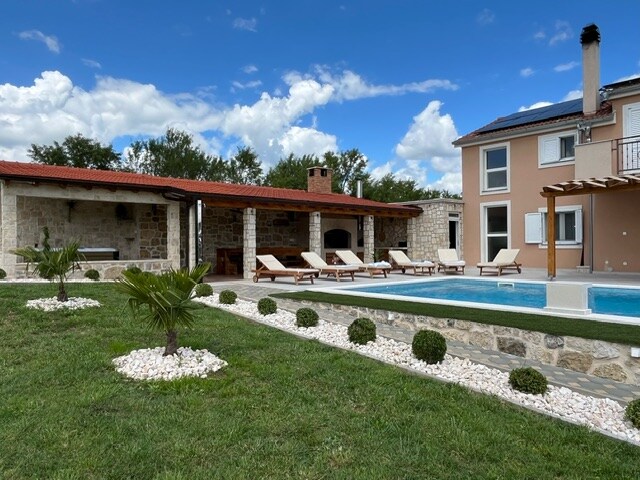 Αν ψάχνετε για γαλήνη, φύση και απόδραση από την καθημερινή βιασύνη, αυτό το ολοκαίνουργιο σπίτι από την ενδοχώρα της Δαλματίας είναι μια εξαιρετική επιλογή. Ο δρόμος που οδηγεί σε ένα μικρό χωριό με λίγους μόνο κατοίκους φέρνει μια αίσθηση απόλαυσης. Πρωινά πουλιά που κελαηδούν, θερμαινόμενη πισίνα, εξωτερικός και εσωτερικός χώρος για απόλυτη χαλάρωση ακούγεται σαν μια ωραία πρόσκληση. Το σπίτι είναι ένας συνδυασμός σύγχρονου και ιστορικού σχεδιασμού, όπου επίσης οι όμορφοι κήποι με δενδρύλλια νότια του ακινήτου δίνουν μια τέλεια εικόνα της καθαρής φύσης.