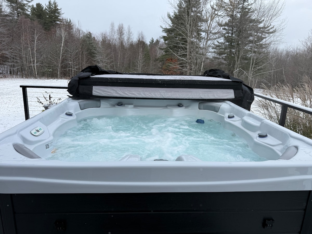 Μοντέρνο ξυλόσπιτο με σπα εξωτερικού χώρου σε φάρμα του Βερμόντ