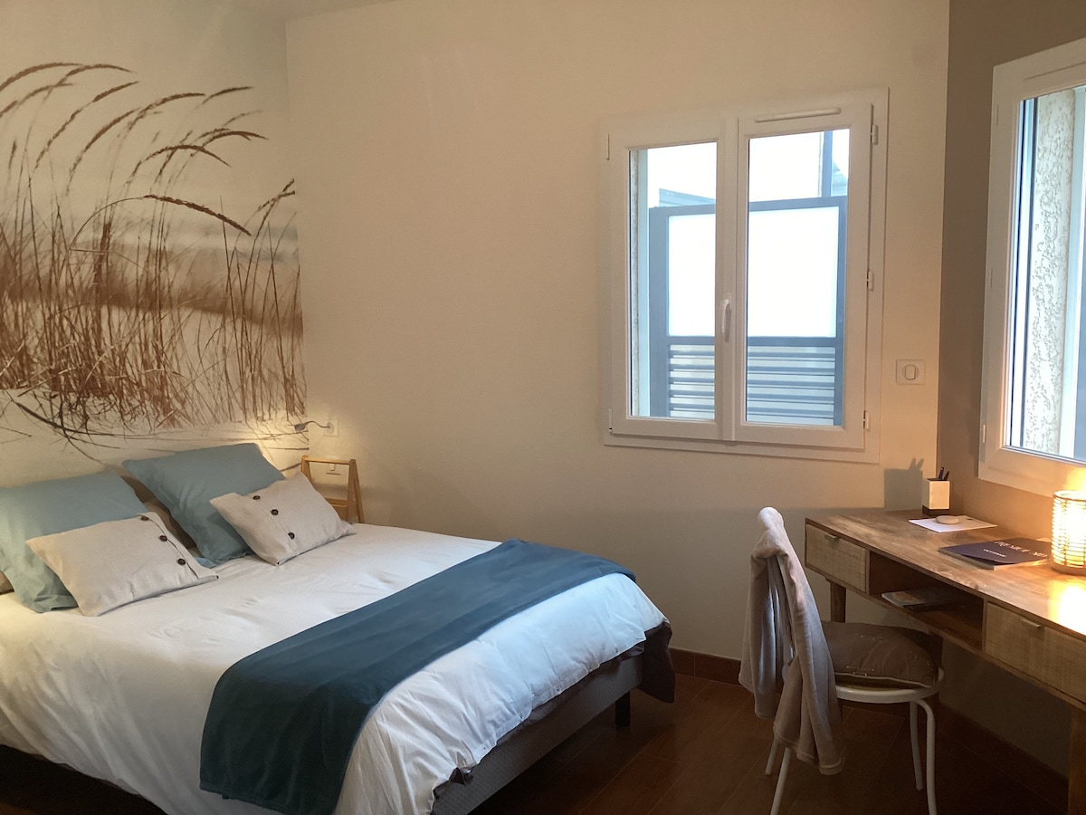 Ανεξάρτητο σπίτι 75 τ.μ., εξ ολοκλήρου μονώροφο και προσβάσιμο σε άτομα με μειωμένη κινητικότητα, που βρίσκεται στο Mauguio. Απολαύστε ένα ήσυχο περιβάλλον σε απόσταση αναπνοής από τις παραλίες του Grand Travers, τη γοητεία του ιστορικού κέντρου και τη φημισμένη αγορά. Περίπατοι γύρω από το Étang de l'Or, φύση, καταστήματα και εστιατόρια σε κοντινή απόσταση. Ιδανικό για μια άνετη διαμονή ανάμεσα στη θάλασσα, τον πολιτισμό και τη χαλάρωση.
