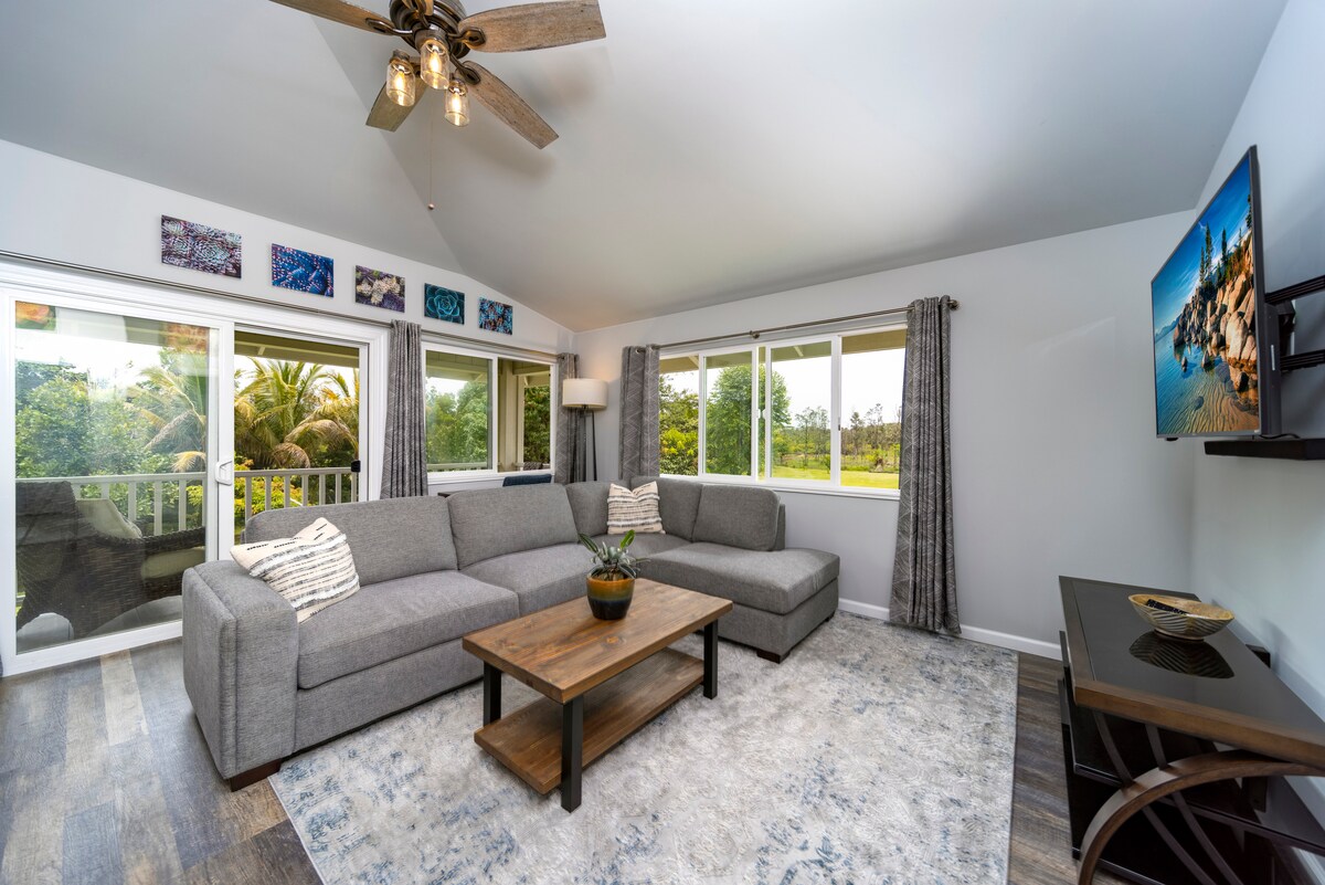 Το Pua Hale ΟΛΟΚΑΙΝΟΥΡΓΙΟ, εκπληκτικό, ευρύχωρο διαμέρισμα στον επάνω όροφο με πολύ φινέτσα. Ανοιχτή πλήρης κουζίνα με όλες τις παροχές, πλήρες ιδιωτικό μπάνιο, εξαιρετικά πολυτελές υπέρδιπλο κρεβάτι με αφρό μνήμης. Νιώστε άνετα στο χώρο του μπαλκονιού ή διασκεδάστε στο γήπεδο βόλεϊ/μπάντμιντον! Κάντε μια βραδινή βουτιά στο τζακούζι κάτω από τα δέντρα μάνγκο και απολαύστε την ύπαιθρο. Απολαύστε το κοντινό Εθνικό Πάρκο Ηφαιστείων, τις πισίνες παλίρροιας, την πεζοπορία στην παραλία, τον ωκεανό και τους καταρράκτες!