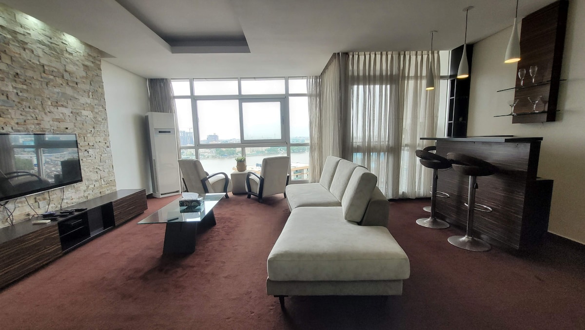 Ξυπνήστε με υπέροχη θέα στη λιμνοθάλασσα από τον 14ο όροφο και χαλαρώστε στην καρδιά της Νήσου Βικτώρια. Αυτό το φωτεινό, μοντέρνο διαμέρισμα 2 υπνοδωματίων είναι ιδανικό για διαμονές διακοπών, προσφέροντας χώρο, άνεση και μια ήρεμη απόδραση μετά την εξερεύνηση του Λάγος. Απολαύστε έναν κομψό χώρο διαβίωσης, πλήρως εξοπλισμένη κουζίνα, γρήγορο WiFi και προαιρετικό καθαρισμό κατά τη διαμονή σας. Περιλαμβάνεται δωρεάν παραλαβή από το αεροδρόμιο για κρατήσεις με τουλάχιστον 10 διανυκτερεύσεις. Βρίσκεται μέσα σε ασφαλές κτήμα 1004, κοντά σε παραλίες, εστιατόρια και νυχτερινή ζωή.