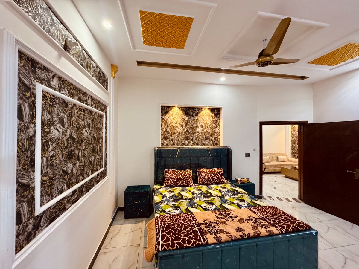 Spacious 1BR ground floor portion near Multan Northern Bypass with no stairs, fast Wi-Fi, free parking, and full AC. Perfect for business travelers, families, and medical tourists needing easy access. Independent entrance, full kitchen, 24/7 security, power backup, and smart TV. Direct parking access, extra living space, and proximity to airport and Nishtar Hospital. Self check-in, instant book available. Your convenient Multan base awaits!