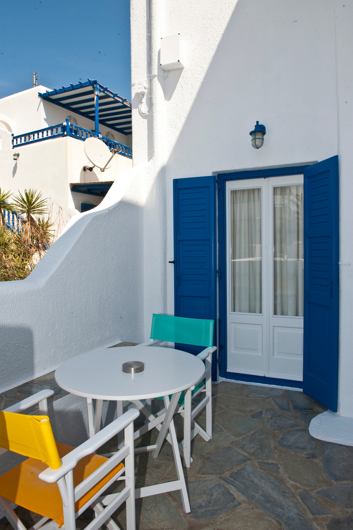 Το δωμάτιο αποτελείται από ένα διπλό κρεβάτι, μίνι μπαρ, καφετιέρα εσπρέσο, έξυπνη τηλεόραση, κλιματισμό και ιδιωτικό μπάνιο με ντους υψηλής πίεσης. Υπάρχει ιδιωτικό μπαλκόνι με εκπληκτική θέα στην πόλη της Μυκόνου και και θέα στο ηλιοβασίλεμα κάθε βράδυ της διαμονής σας. Διατίθεται επίσης δωρεάν WiFi για όλους τους επισκέπτες. Το δωμάτιο βρίσκεται εκατό (100) μέτρα από την παραλία, τα εστιατόρια και τα μπαρ του κέντρου της Μυκόνου.