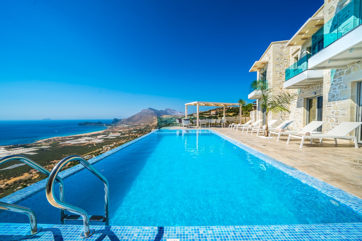 • Εκπληκτική θέα στη θάλασσα της διάσημης παραλίας Φαλάσαρνας • Ιδιωτική οικολογική πισίνα υπερχείλισης +παιδική πισίνα+καταρράκτες (14 μέτρα μήκος, 4,5 μέτρα πλάτος , 1,80 βάθος) • Εσωτερικό θερμαινόμενο τζακούζι με θέα στη θάλασσα • Μεγάλοι εξωτερικοί χώροι και κήπος & 200 τ.μ. εσωτερικού χώρου μοναδικού πολυτελούς στιλ • Μπάρμπεκιου • Υπηρεσία καθαρισμού μεσαίας διαμονής (για κράτηση τουλάχιστον 7 διανυκτερεύσεων) • 500mt to one Taverna • 3 χιλιόμετρα από την παραλία Φαλάσαρνα • 1,5 χλμ. από τον Πλάτανο ( σούπερ μάρκετ & παντοπωλείο/αρτοποιείο) • 45 χλμ. από τα Χανιά • 10 χλμ. από την Κίσσαμο/λιμάνι για τον Μπάλο