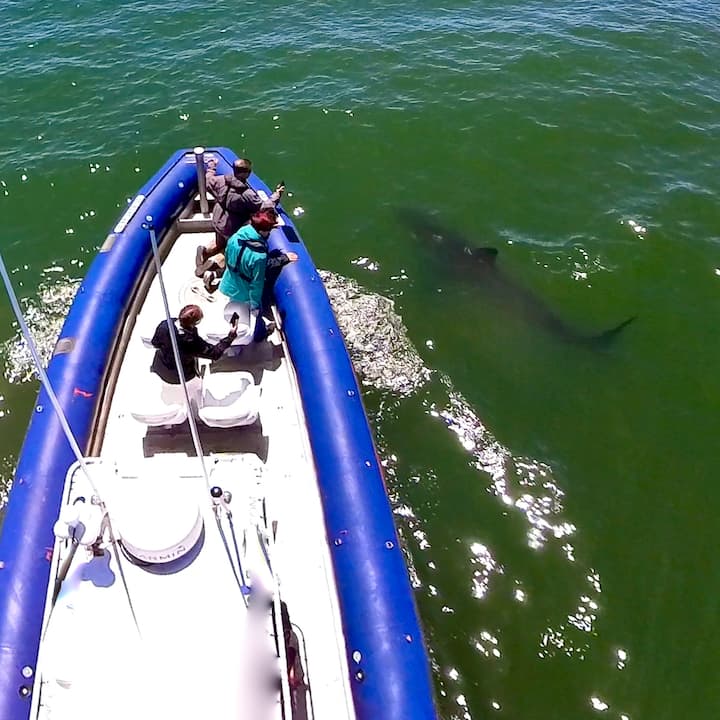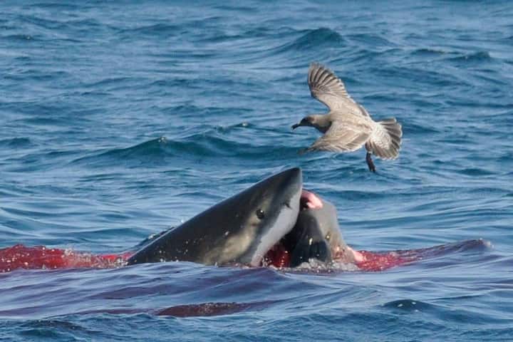 Δείτε λευκούς καρχαρίες με έναν εκπαιδευτή καρχαριών