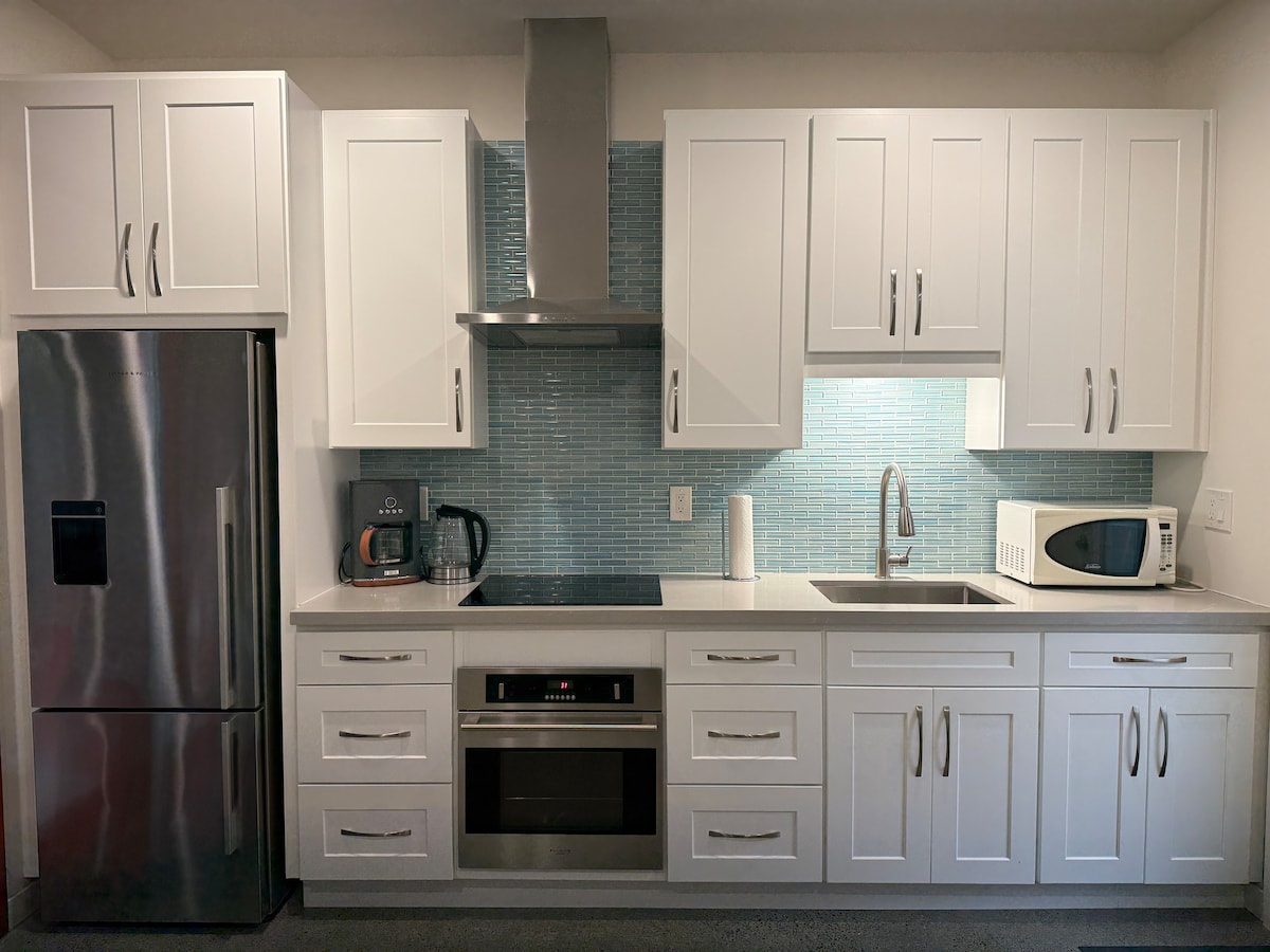 Ήσυχο, καθαρό, αυτόνομο στούντιο 37 τ.μ. σε ένα μοντέρνο κατάλυμα με πλήρες μπάνιο, κουζίνα, ιδιωτική είσοδο και ασφαλή χώρο στάθμευσης με φορτιστή ηλεκτρικού οχήματος. Άνετα επιπλωμένο με 1 διπλό κρεβάτι, 1 πλήρη καναπέ-κρεβάτι, γραφείο, κέντρο πολυμέσων, ψυγείο με παγοθήκη, φούρνο, ντουζιέρα χωρίς σκαλοπάτι, μπιντέ, πλυντήριο και στεγνωτήριο. Μεγάλες συρόμενες γυάλινες πόρτες σε αίθριο και ψηλά κέδροι 150', δέντρα madrone. Εύκολη πρόσβαση χωρίς σκάλες ή σκαλοπάτια. Ζεστό, λαμπερό νερό, θερμαινόμενα τσιμεντένια δάπεδα, κλιματισμός και άφθονος αερισμός.