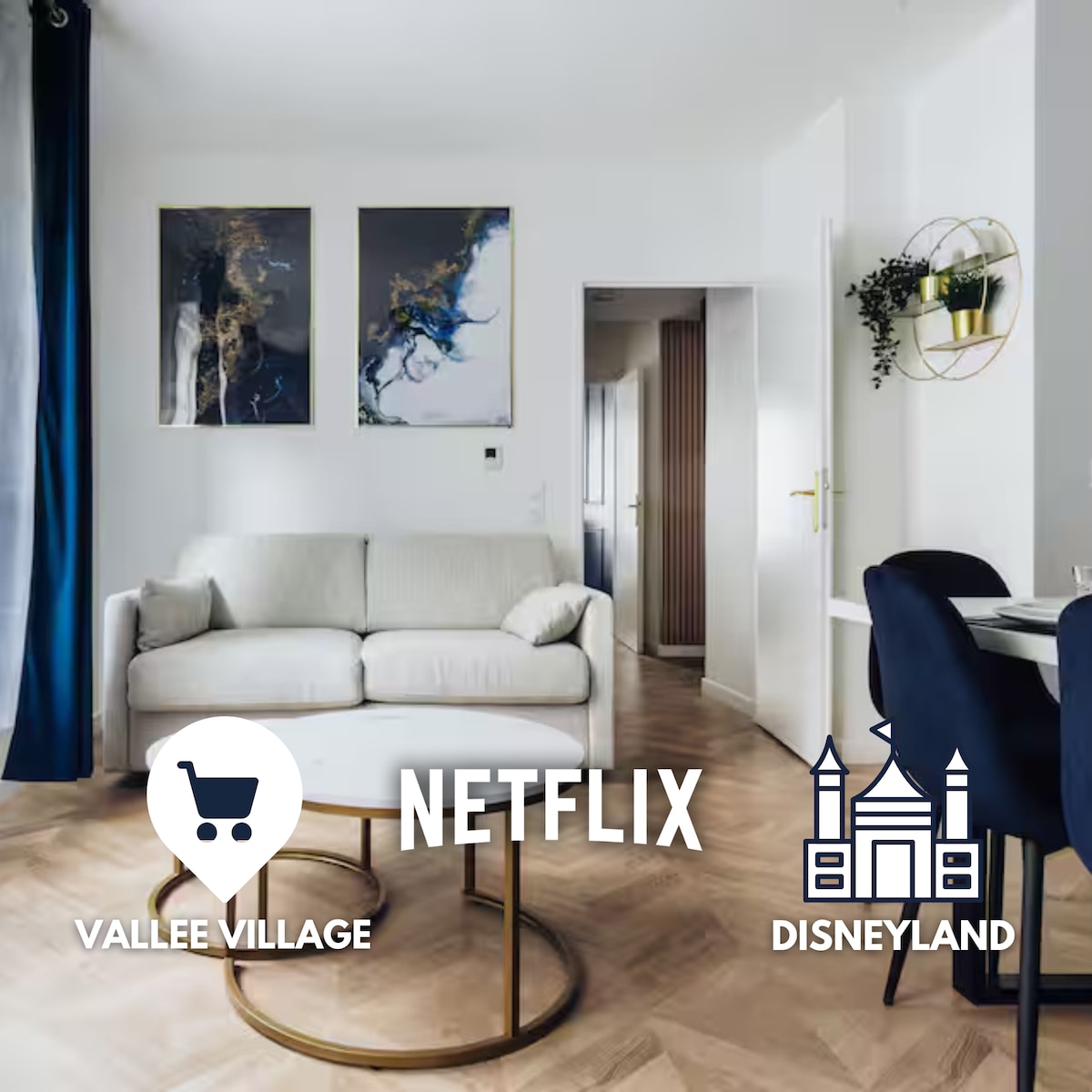 Πολυτελής ιδιωτική κατοικία στις πύλες της Ντίσνεϊλαντ του Παρισιού. Νέο διαμέρισμα, εκλεπτυσμένο και φωτεινό, που βρίσκεται στην αγγλική συνοικία Σερίς με τη γοητεία του Λονδίνου. Μόνο 5 λεπτά από τη Ντίσνεϊλαντ και κοντά στη Val d'Europe και το RER A για το Παρίσι. Ασφαλής ιδιωτικός χώρος στάθμευσης και check-in χωρίς παρουσία οικοδεσπότη με έξυπνη κλειδαριά. WiFi πολύ υψηλής ταχύτητας με οπτικές ίνες, 5 κλινοσκεπάσματα⭐, ιδιωτική βεράντα και πολυτελείς παροχές. Ένα αποκλειστικό σκηνικό για μια εξαιρετική διαμονή, που συνδυάζει κομψότητα, απόλυτη άνεση και ηρεμία.