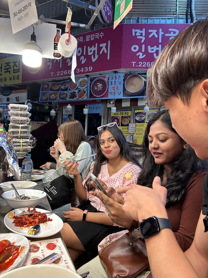 Γεύση και συζήτηση με καθηγητή Κορεάτικων του Πανεπιστημίου της Σεούλ, φαγητό στην αγορά Gwangjang και μάθημα Κορεάτικων
