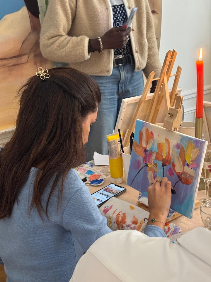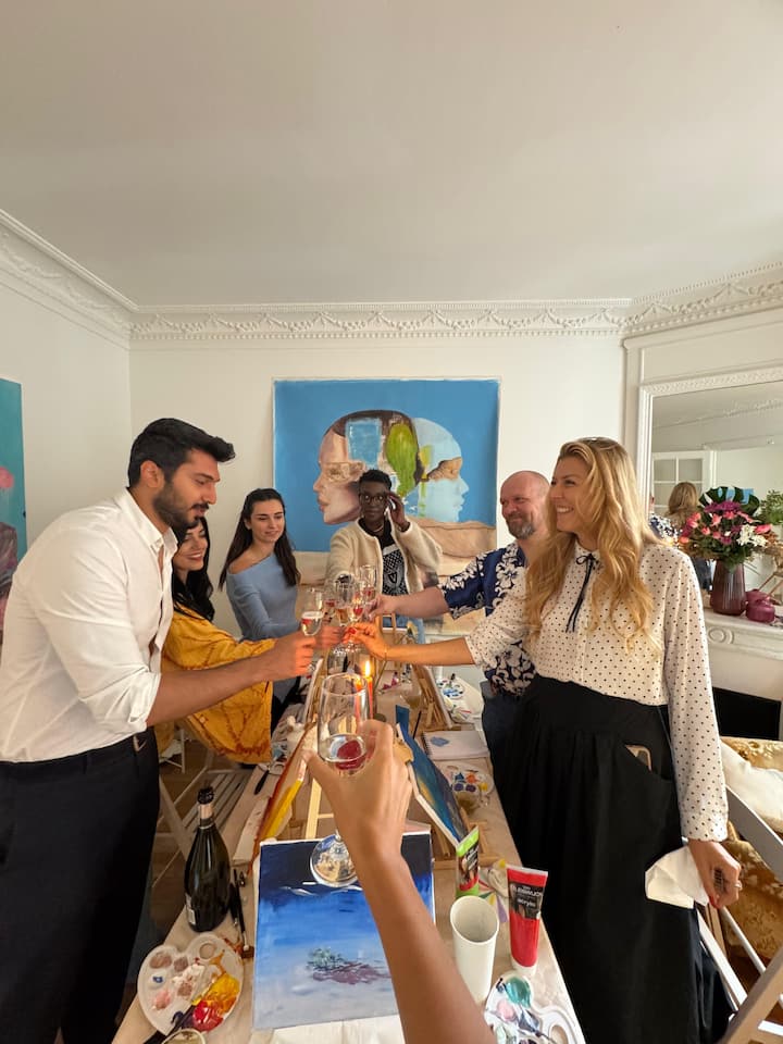 Ζωγραφική και ποτό σε κλασικό ατελιέ καλλιτέχνη στο Παρίσι
