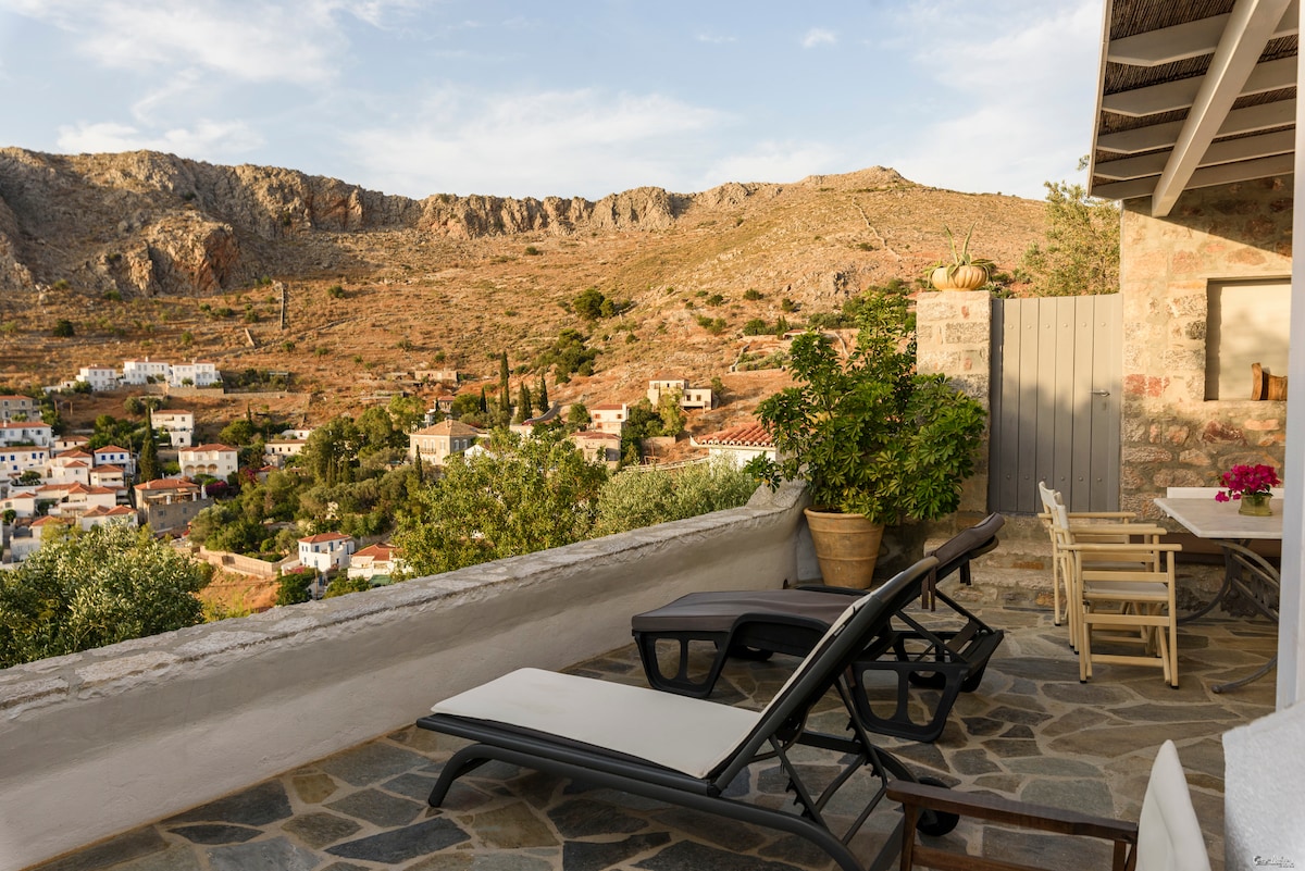 Μείνετε σε ένα από τα παλαιότερα σπίτια της Υδρας με την πιο μοναδική πανοραμική θέα 360° στο λιμάνι, τη θάλασσα και τους λόφους του νησιού. Μόλις 2 λεπτά με τα πόδια από το λιμάνι, τα εστιατόρια και τα καταστήματα, αλλά κρυμμένο σε ένα γαλήνιο και ιδιωτικό περιβάλλον. Το σπίτι συνδυάζει την ιστορική γοητεία με την αυθεντική διακόσμηση που αντικατοπτρίζει το πλούσιο παρελθόν της Ύδρας. Ένα σπάνιο κατάλυμα που προσφέρει εκπληκτική θέα, χαρακτήρα και την τέλεια ισορροπία μεταξύ κεντρικής τοποθεσίας και ήσυχης νησιωτικής ζωής.