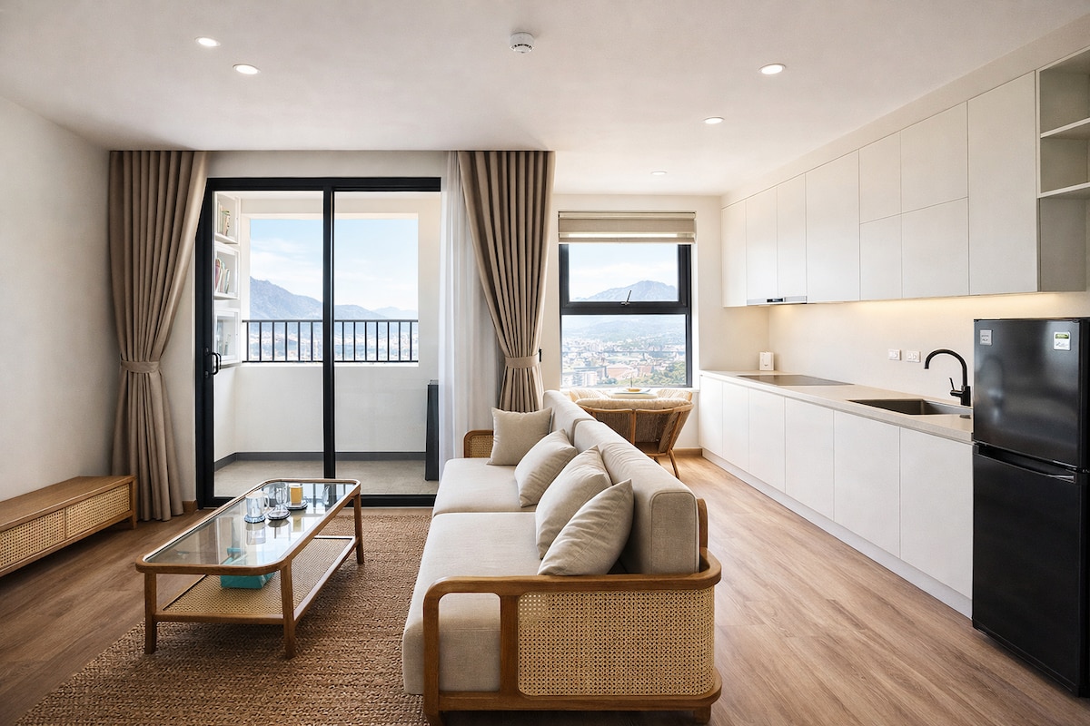 Giữa mây trời và núi non Tây Bắc, Ellen Sapa Cloud Home không phải là một chỗ ở đơn thuần, mà là một không gian ấm áp, giản dị, khung cảnh núi rừng trải dài trước mắt hùng vĩ và nên thơ. Căn hộ nằm ở tầng cao, sở hữu view hai mặt hiếm có tại Sa Pa: một bên là thị trấn Sa Pa mờ sương với Hồ Mắt Ngọc, Núi Hàm Rồng, một bên là dãy Hoàng Liên Sơn hùng vĩ, nơi đỉnh Fansipan ẩn hiện trong mây. Ellen Sapa Cloud Home mong được đón bạn như một người thân trở về nhà – nhẹ nhàng, bình yên và đủ đầy.