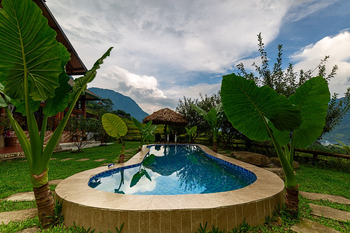 Moc Home SaPa – a traditional wooden stilt house nestled among lush rice fields, just 11km from Sa Pa town. The two-story home features 9 private rooms, cozy shared spaces, a library, kitchen and dining area, plus zones for meditation and yoga. Outside, there’s a small pool and green gardens perfect for relaxing in the fresh mountain air. Stay with Siểu and her family to experience peaceful village life, enjoy local dishes, and watch the sunrise over the Northwest mountains.