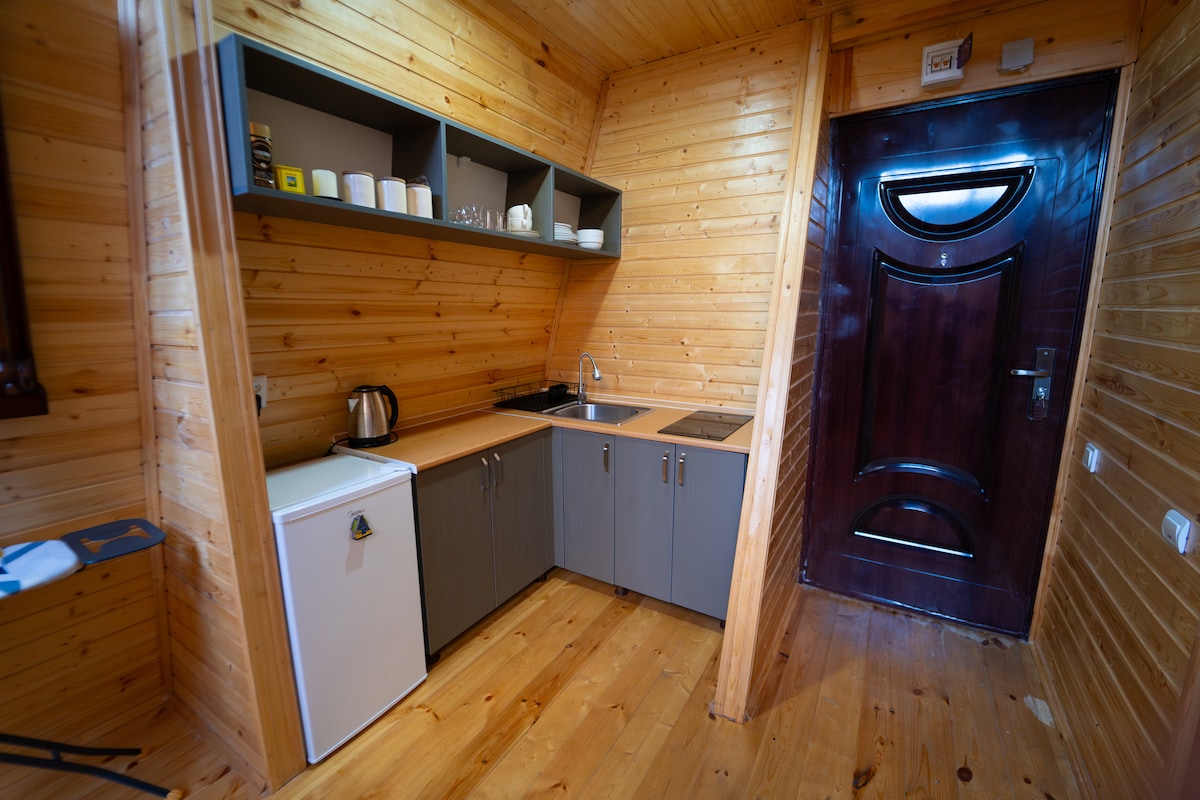 Relax alone, with the whole family or bunch of friends at this peaceful place to stay, enjoy time with your siblings, friends or meditate in your own world. Isolated, high ceiling Cabin - Cottage is unique to dive into your comfort zone with incredible views of protected area of Mountainous Adjara, only 45 minutes from Batumi, with elevation of 450 meters. Perfect for couple or for couple with kids, plus additional hostel type old wooden house next to cottage with few additional beds.
