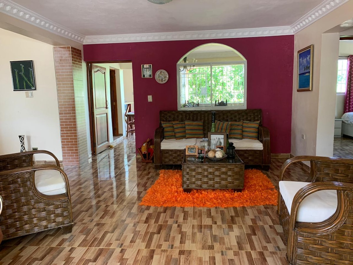 Un lugar para descansar en familia, y mirar la naturaleza desde la hermosa terraza y sus dos balcones. Un amplio espacio para disfrutar de la tranquilidad y la comodidad en este moderno y hermoso apartamento totalmente equipado. En la parte céntrica del pueblo. Tenemos todos los electrodomésticos necesarios, aires acondicionado, lavadora, agua permanente fría y caliente, un baño de lujo. Colmados cerca, todo está cómodo.