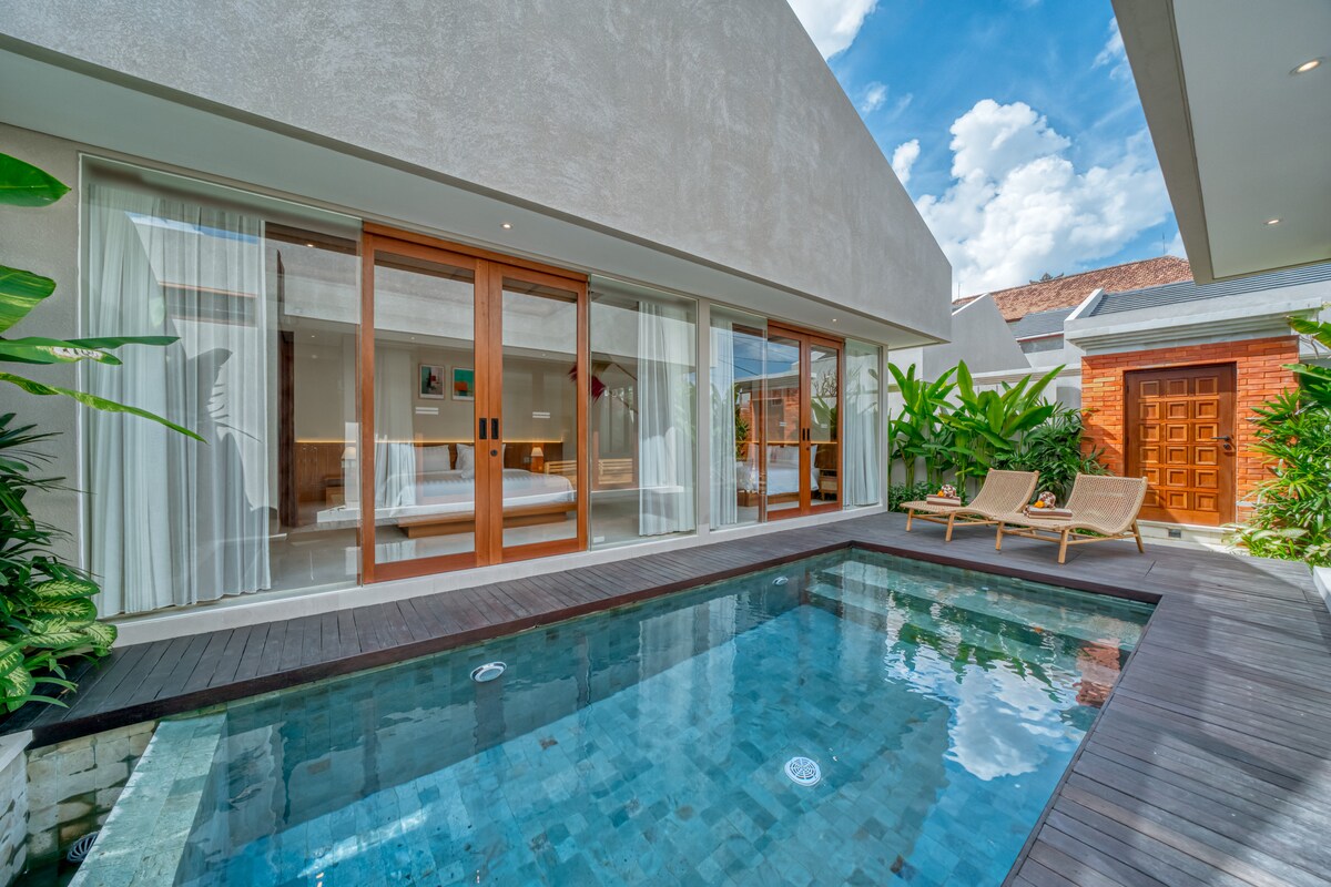 Πολυτελής ιδιωτική βίλα με πισίνα 6x3 μέτρων. Ασφαλής, ιδιωτική, ασφαλής. Πλούσιος κήπος και προστατευμένη αλλά υπαίθρια κουζίνα για φαγητό και χαλάρωση δίπλα στην πισίνα. Κρεβάτι queen size, εξωτερική μπανιέρα και ντους, με θέα στη λίμνη με τα ψάρια, πλήρως εξοπλισμένη κουζίνα. Κλιματισμός, τηλεόραση, εξαιρετικό WiFi, καθημερινή υπηρεσία καθαρισμού και πρωινό. Απέχουμε 8 λεπτά με τα πόδια από τον κεντρικό δρόμο ή μια σύντομη βόλτα με σκούτερ. Αυτό σημαίνει ηρεμία και γαλήνη, και όχι θόρυβος αυτοκινήτου. Το προσωπικό μας θα χαρεί να σας μεταφέρει με σκούτερ, αν χρειαστεί.