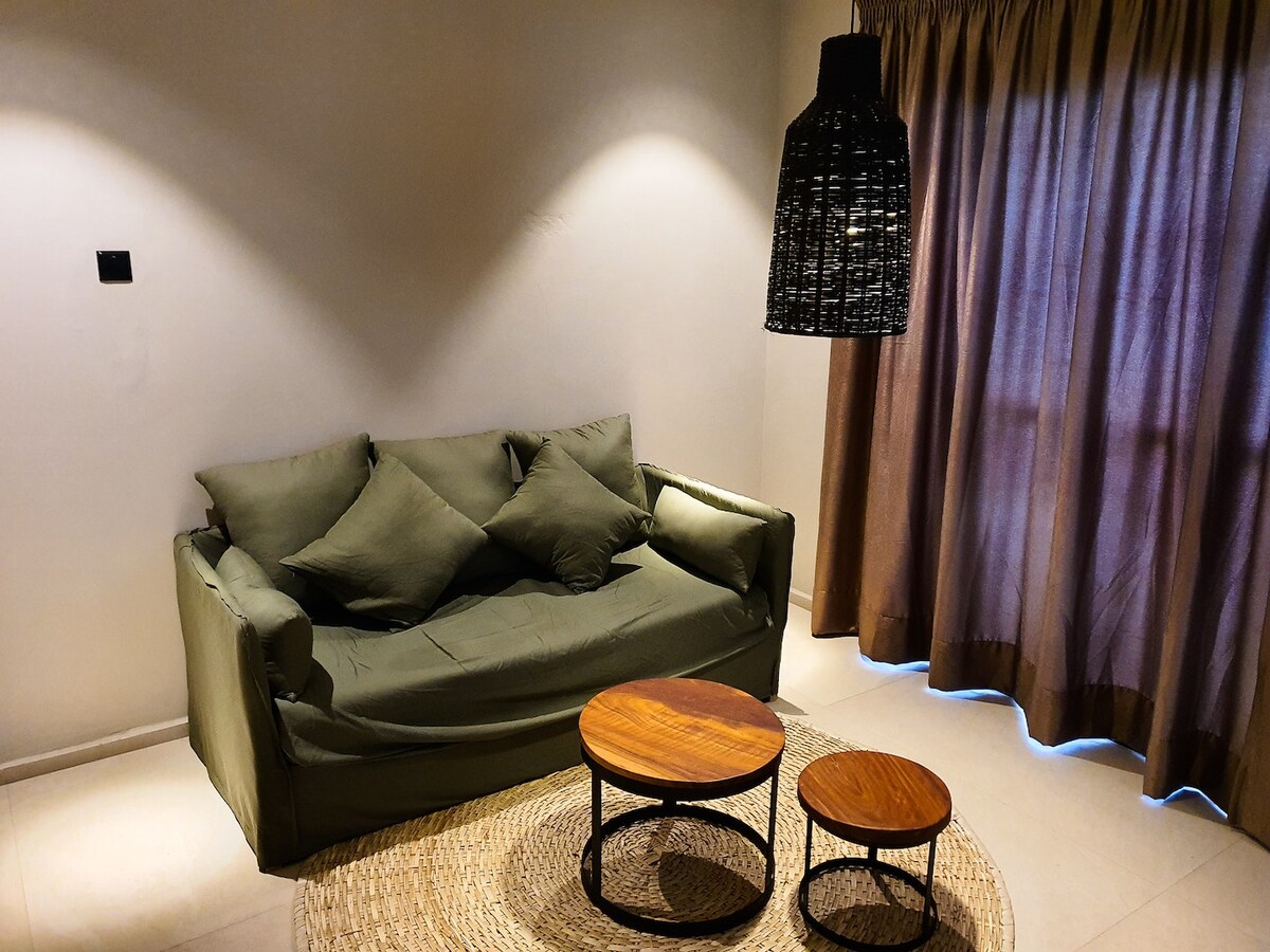 جناح بغرفة نوم وصالة ونوافذ واسعة