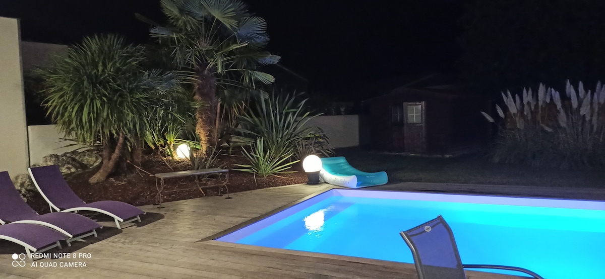 Ανάμεσα στη θάλασσα, το δάσος και τον βάλτο, 4 χιλιόμετρα από τις παραλίες της Μεγάλης Ακτής (Saint Palais, La Palmyre...), μεγάλο σπίτι 190 τ.μ. με 5 υπνοδωμάτια για να φιλοξενήσει 11 άτομα. Χώρος 850 τ.μ. με θερμαινόμενη πισίνα (8 μ. x 4 μ.). Αυτό το σπίτι αποτελείται από 2 σαλόνια, τραπεζαρία, κουζίνα, 4 μεγάλα υπνοδωμάτια και ένα υπνοδωμάτιο ξυλόσπιτου, ένα μπάνιο, μια τουαλέτα και 2 τουαλέτες. Πισίνα διαθέσιμη από τις αρχές Μαΐου έως το τέλος Σεπτεμβρίου. Πλήρης ενοικίαση εβδομάδας ή Σαββατοκύριακου μόνο.