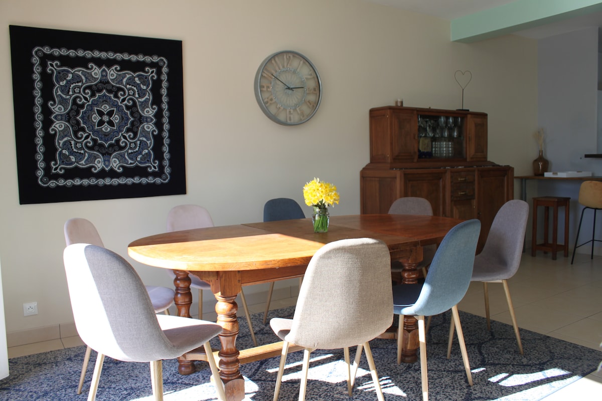 Μεγάλο κλιματιζόμενο σπίτι, ιδανικό για οικογένειες και ομαδικές διαμονές. Κήπος 9000 τ.μ. με εναέριο τροχαλία, τραμπολίνο, μάθημα Ninja, τζακούζι, βιντεοπροβολέα, ποδήλατα για να εξερευνήσετε τη Λίγηρα με ποδήλατο. Ευρύχωροι εσωτερικοί χώροι, φιλική κουζίνα, υπνοδωμάτια με ντους. 5 λεπτά από τον Λίγηρα, 15 λεπτά με ποδήλατο από την αγορά, κοντά σε κάστρα και δάση. Ένα μέρος για να συναντηθείτε, να χαλαρώσετε και να δημιουργήσετε όμορφες αναμνήσεις.