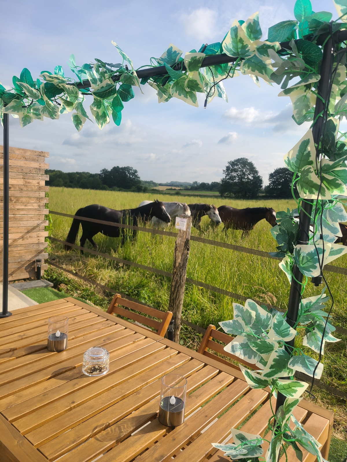 Θα είστε ευπρόσδεκτοι στο άνετο εξοχικό μας με άλογα, το οποίο προσφέρει εξαιρετική θέα σε ένα λιβάδι που κατοικείται από μεγαλοπρεπή άλογα (από τα μέσα Απριλίου έως τον Νοέμβριο). Ιδανικό για έως και 4 άτομα, το ζεστό μας κατάλυμα προσφέρει έναν καλά οργανωμένο χώρο, μια εξοπλισμένη κουζίνα και ένα άνετο σαλόνι ιδανικό για να εξερευνήσετε τη γύρω φύση. Απολαύστε τον πρωινό σας καφέ με φόντο τα λιβάδια και αφεθείτε στην ηρεμία της φύσης, ενώ χαλαρώνετε στην ιδιωτική βεράντα.