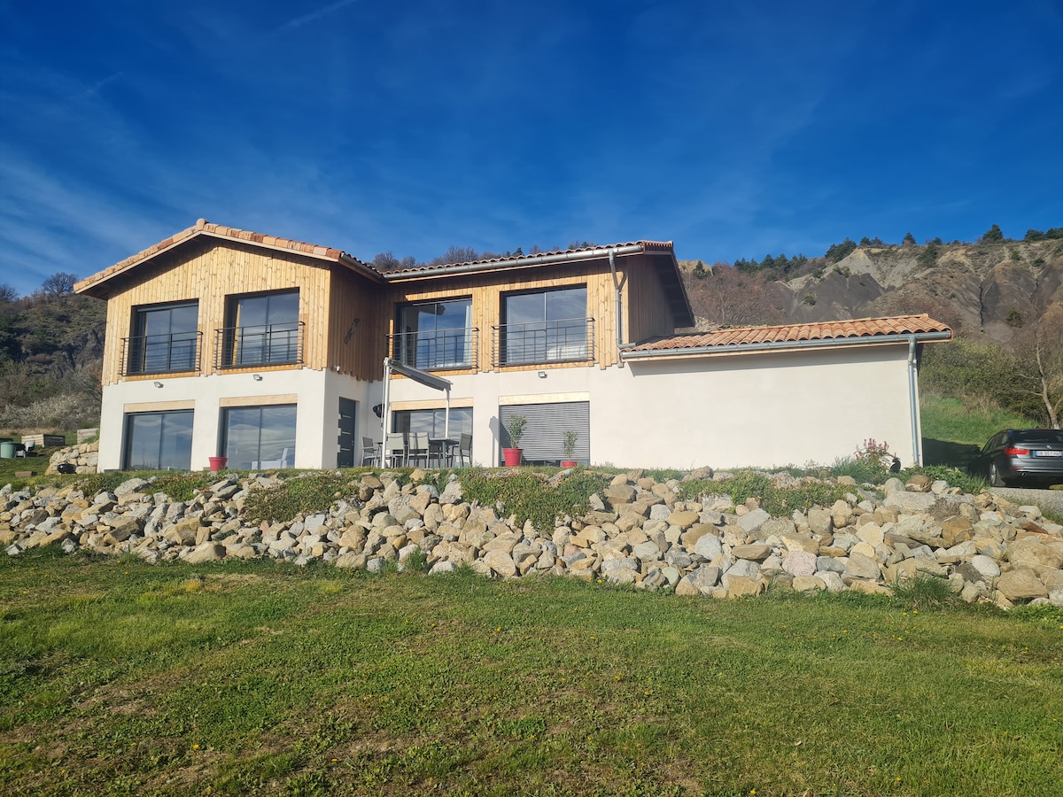 Αυτό το μονοκατοικία, πρόσφατο και μοναδικό εξοχικό σπίτι χτίστηκε με ευγενή υλικά: βουρτσισμένο λάρικα, ασβέστη, σίδερο και ξύλο. Με ένα τζαμαρισμένο άνοιγμα στα βουνά χωρίς κανένα απέναντι, χαλαρώστε σε αυτό το ΗΣΥΧΟ και ΚΟΜΨΟ κατάλυμα στην προστατευόμενη και άγρια κοιλάδα VALGAUDEMAR στις HAUTES-ALPES. Πεζοπορία, σκι αντοχής, πεζοπορία στο χιόνι... πολλές δραστηριότητες μακριά από τα μεγάλα τουριστικά συγκροτήματα αλλά τόσο κοντά στη φύση και τους κατοίκους της. ΤΟΠΟΘΕΣΙΑ ΣΤΗ ΜΕΣΗ ΤΗΣ ΦΥΣΗΣ.