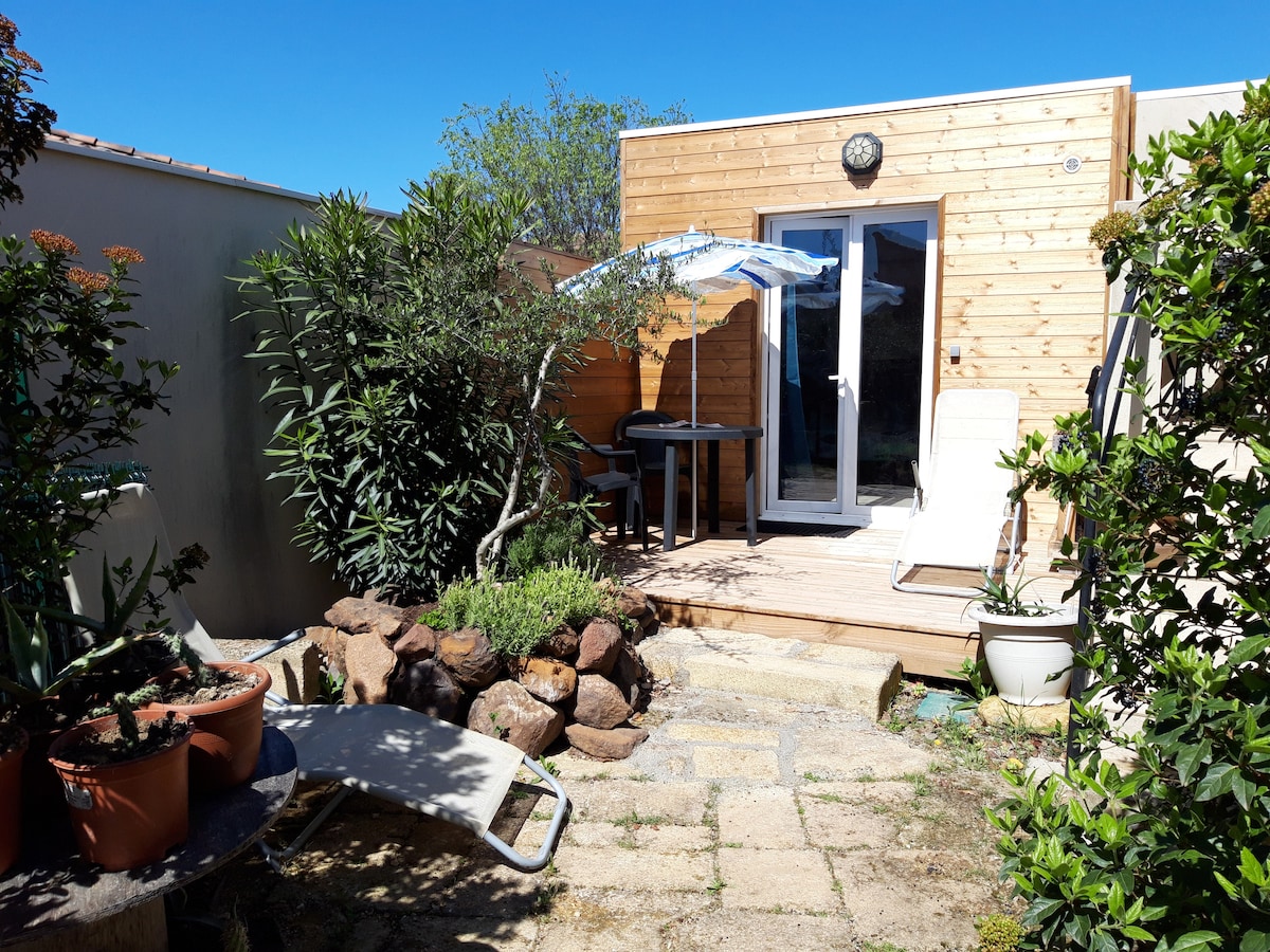Près Pont du Gard, à 4km de la sortie 23 de l'A9, chalet aménagé pour accueillir 2 personnes (2 lits de 80) en gestion libre (ménage non inclus). Le GR 63 d'Avignon au Pont du Gard et le GR 670 (le chemin Urbain V) traversent le village. Pour les randonneurs (UNIQUEMENT) qui voyagent à 4, possibilité de louer une chambre supplémentaire, indépendante du chalet. Vous disposerez d'une place de stationnement dans la propriété et si besoin, d'un espace sécurisé pour ranger des vélos.