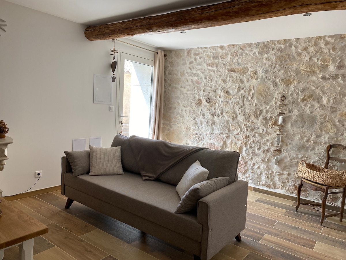 Elected Ambassadors Maisons de France by Airbnb region Provence Alpes Côte d'Azur, our little cocoon is also labeled Valeurs Parc. Ideal for 2 people restored with ecological materials (lime, hemp, wood, terracotta) it is very fresh and healthy: ideal place to discover the country of the Verdon, between the low gorges and lavandin fields, surrounded by vines and olive trees. You can enjoy the larch terrace under the benevolent shade of the fig tree and the vine.