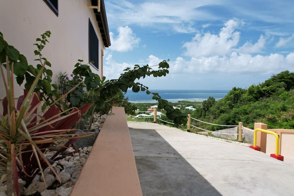 Forget your worries in this spacious and serene space. This newly built, elegant, apartment is perfect for your family with every convenience. Create exciting and memorable dishes in our full kitchen. Enjoy airconditioned comfort and entertainment with smart tv's in the bedrooms and dining/living area. Sit on the porch, enjoy the breeze and a beautiful view of the ocean. We are just a few minutes' drive from a KFC and supermarket. Let us be your home away from home!