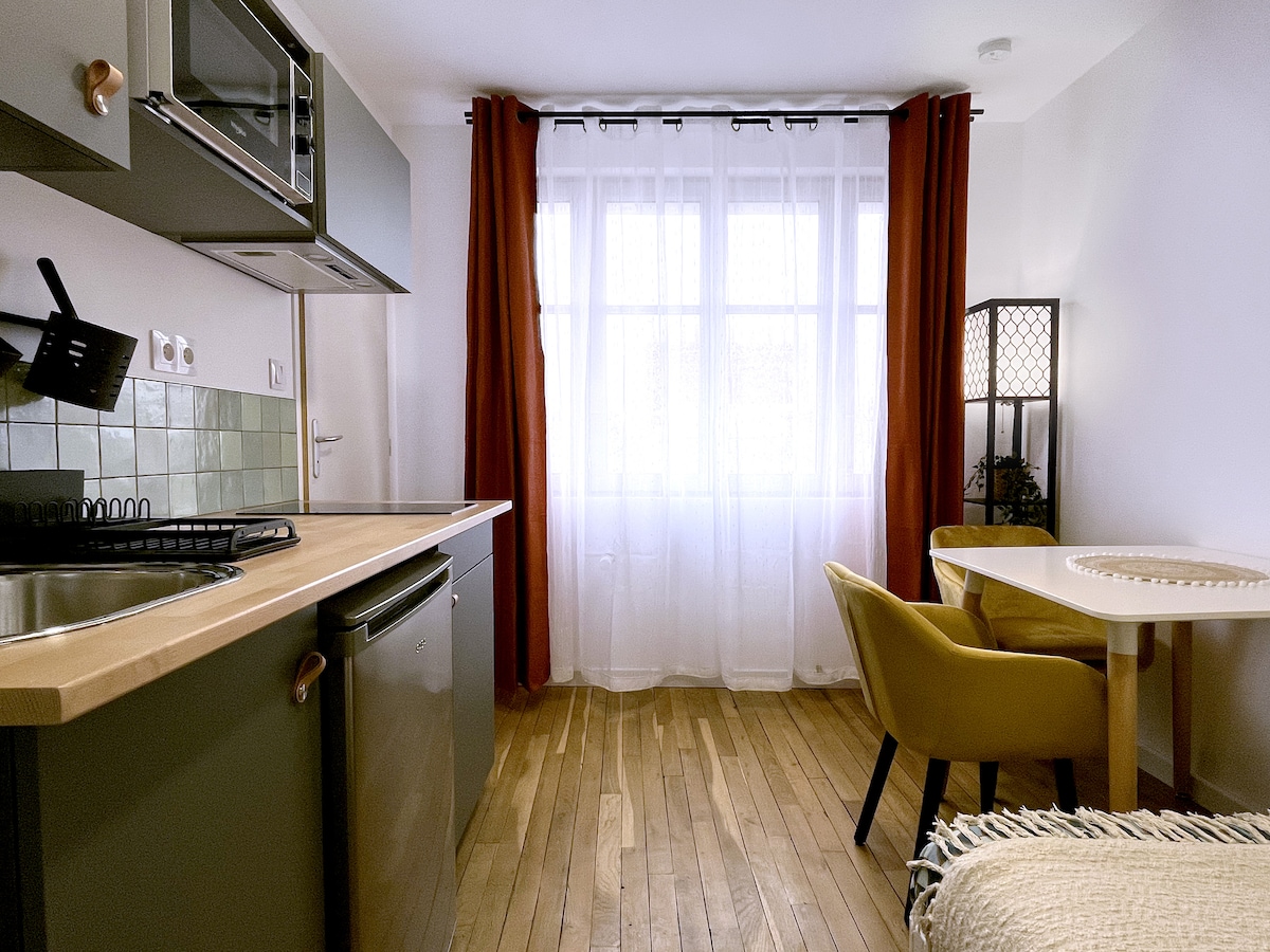 Côté Cour-gare/centre, tout équipé, linges fournis