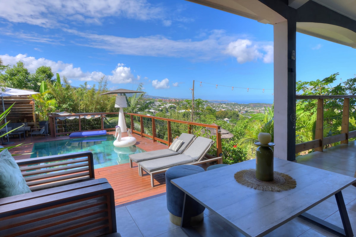 Villa des Pétunias - Πισίνα και βεράντα με θέα στη θάλασσα