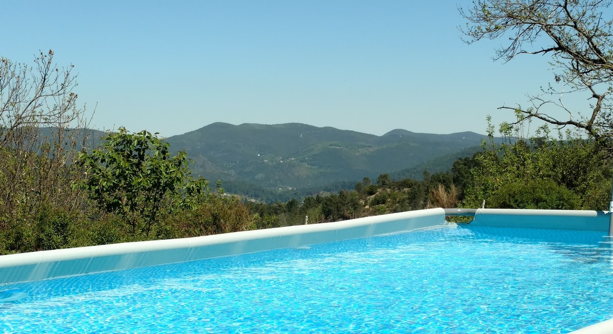 Dans le Parc National des Cévennes au bord des GR 6-7 vous séjournerez dans cette maisonnette avec une vue imprenable sur 50 km de montagne depuis une grande terrasse dominante.Pour une personne solo ou un couple.Une grande pièce de 30 m² avec SdB-WC indépendant et espace cuisine tt équipé.Internet 24 h/24.Un espace idéal pour la détente et le télétravail.Le linge de maison est fourni.Piscine naturelle de mi-mai à fin septembre selon température.Attention, accès sportif par sentier et marches.
