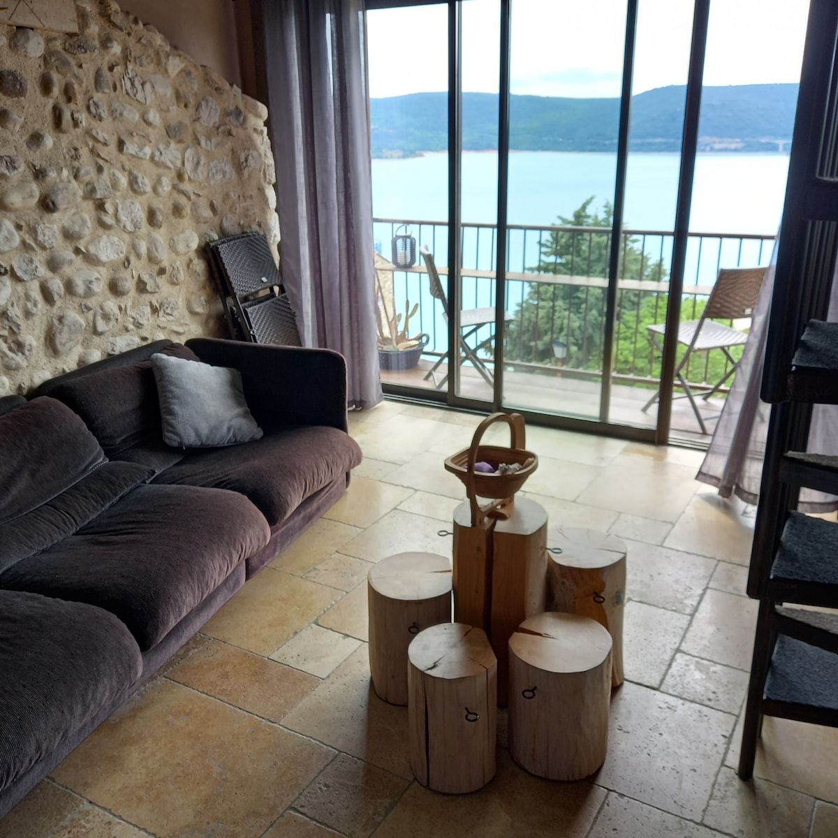 Διαμέρισμα δύο δωματίων, 46 τ.μ., ήσυχο και λειτουργικό, που σας προσφέρει μια όμορφη θέα στη λίμνη, σε μια μικρή τυπική κατοικία της Προβηγκίας. Παρέχονται κλινοσκεπάσματα και σεντόνια. Απέχει 15 λεπτά με τα πόδια ή δύο λεπτά με το αυτοκίνητο από τα πρώτα καταστήματα και εστιατόρια του Sainte Croix du Verdon. Παραλίες λίμνης σε κοντινή απόσταση με ένα μικρό μονοπάτι από την κατοικία. Ελάτε και χαλαρώστε με τον ήχο του ανέμου στα πεύκα, τις μυρωδιές της Garrigue και το τραγούδι των τζικαράδων το καλοκαίρι...