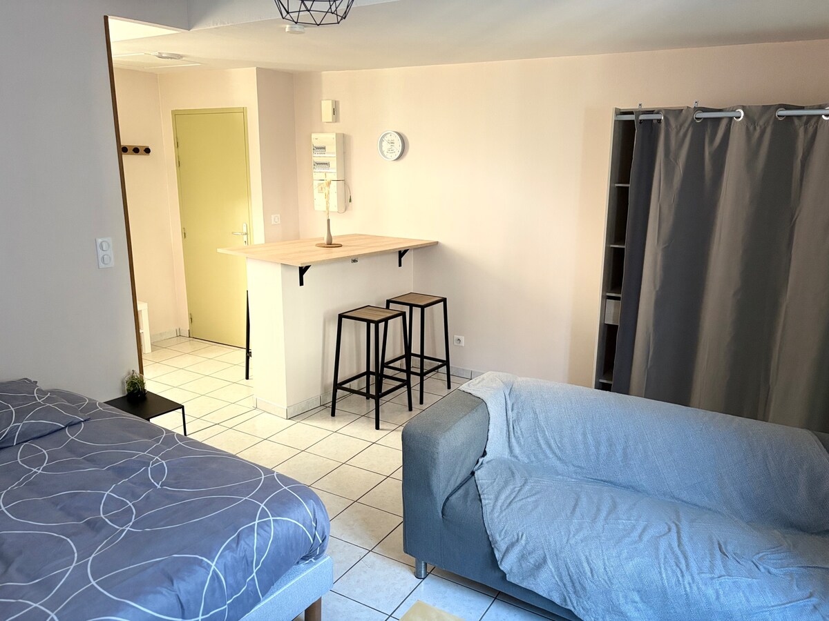 Σας καλωσορίζω στο ισόγειο του σπτι μου που βρίσκεται στην καρδιά της ιστορικής περιοχής του Aubusson. Είναι ένα ζεστό κατάλυμα 30 τ.μ. με κουζίνα και σαλόνι. Η εξοπλισμένη κουζίνα έχει θέα σε μια μικρή ιδιωτική αυλή. Το σαλόνι μπορεί να φιλοξενήσει 3 άτομα, με ένα διπλό κρεβάτι 140 και ένα μονό κρεβάτι, wifi και τηλεόραση. Το μπάνιο στο ισόγειο είναι ιδιωτικό για το κατάλυμα, αλλά βρίσκεται έξω από το σαλόνι, μόνο η τουαλέτα στην είσοδο του σπιτιού είναι κοινόχρηστη.